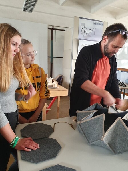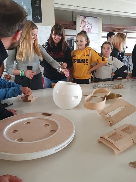 Po zjedzeniu pysznej grochówki udaliśmy się do Kampusu przy ulicy Racławickiej. Tam obejrzeliśmy między innymi jak powstają obiekty rzeźbione przez maszynę. Mieliśmy okazję odwiedzić sale wzornictwa przemysłowego