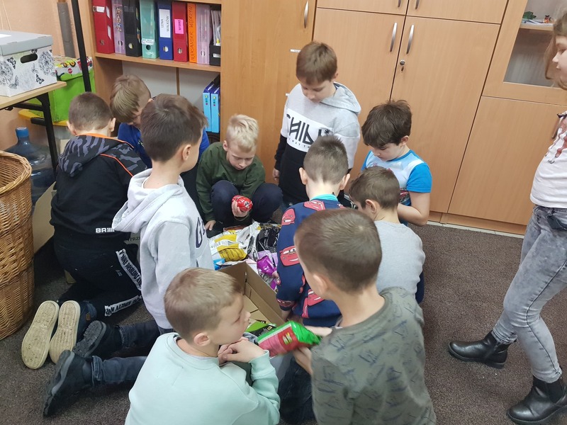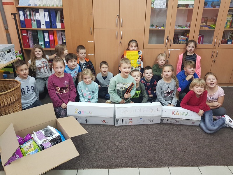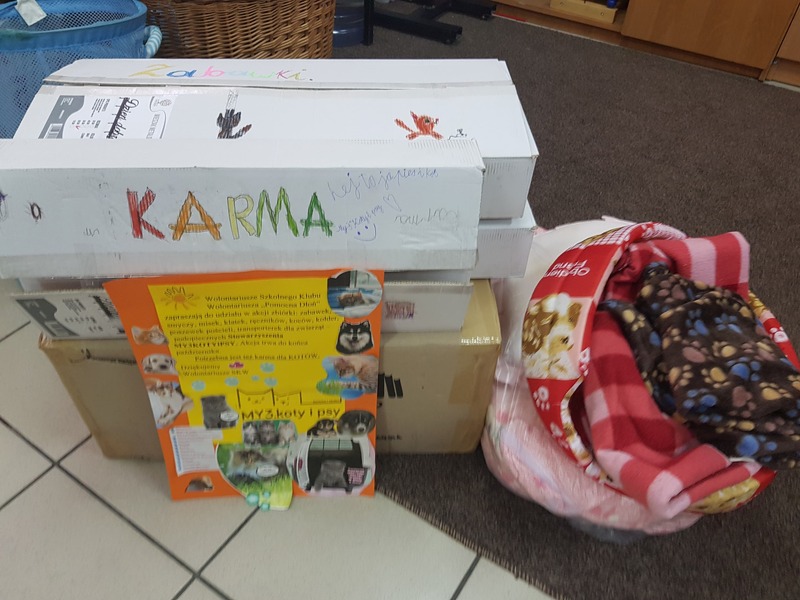 Dzisiejsze spotkanie wolontariuszy Szkolnego Klubu Wolontariusza „Pomocna Dłoń” było okazją do podsumowania akcji zbiórki zabawek, karmy i innych akcesoriów dla kotów podopiecznych Stowarzyszenia MY3KOTYiPSY. Łącznie zebrano 20 kg karmy kociej, kilka misek, smyczy, zabawek, także kocyków, ręczników i innych artykułów tekstylnych niezbędnych do pielęgnacji zwierząt. Dziękujemy wszystkim zaangażowanym w zbiórkę, bo … dobrze być dobrym, na co dzień i w święta, i myśleć o innych, i dbać o zwierzęta…