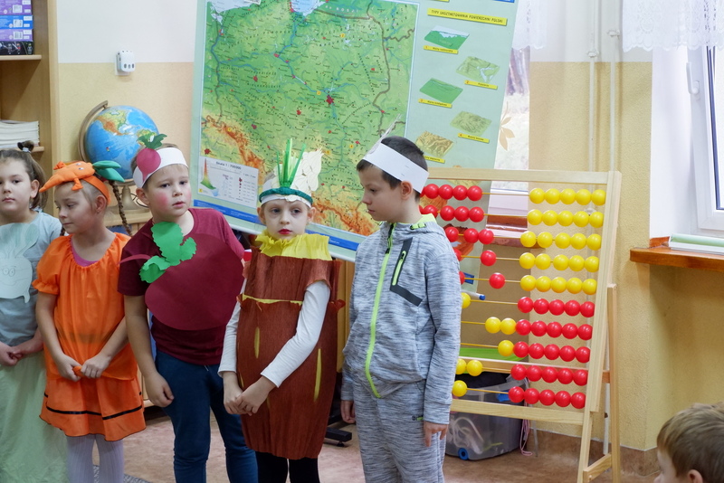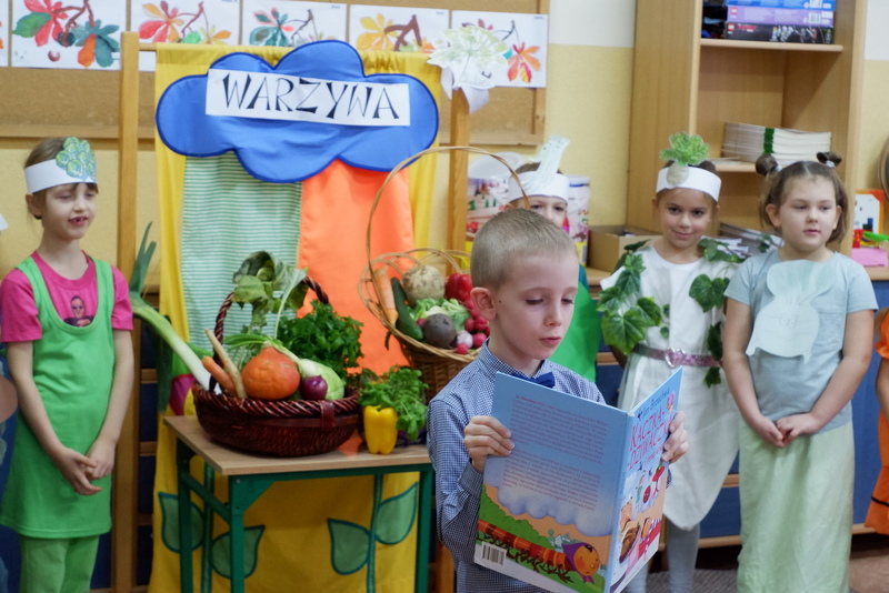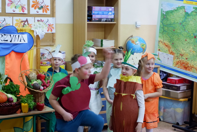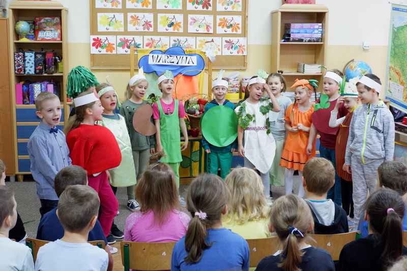 Widzowie z zaciekawieniem oglądali scenki z życia warzyw, a na koniec włączyli się do wspólnego śpiewania piosenki pt. „Witaminki”. Na uznanie i podziękowanie zasługuje również kreatywność rodziców małych „aktorów”, którzy z zaangażowaniem włączyli się w pomoc podczas przygotowania strojów dla swoich pociech.