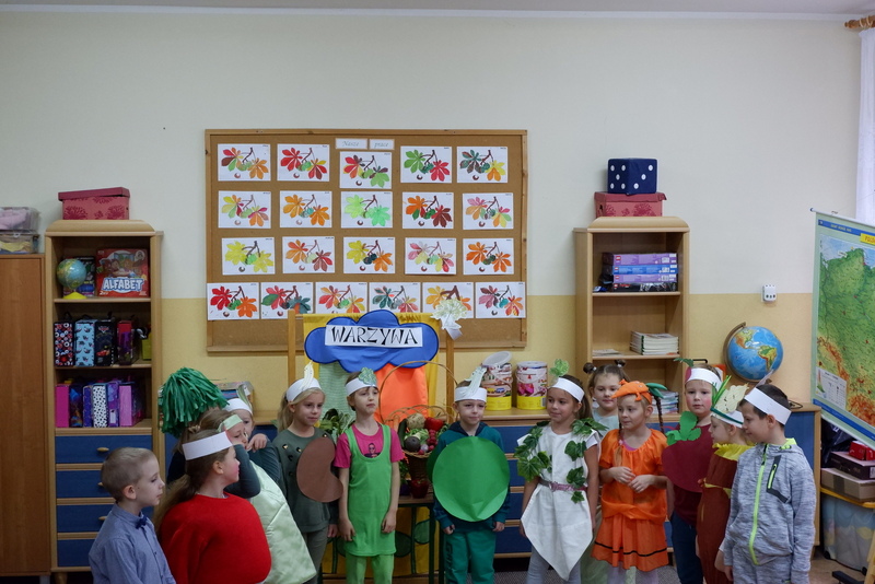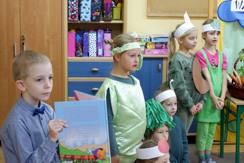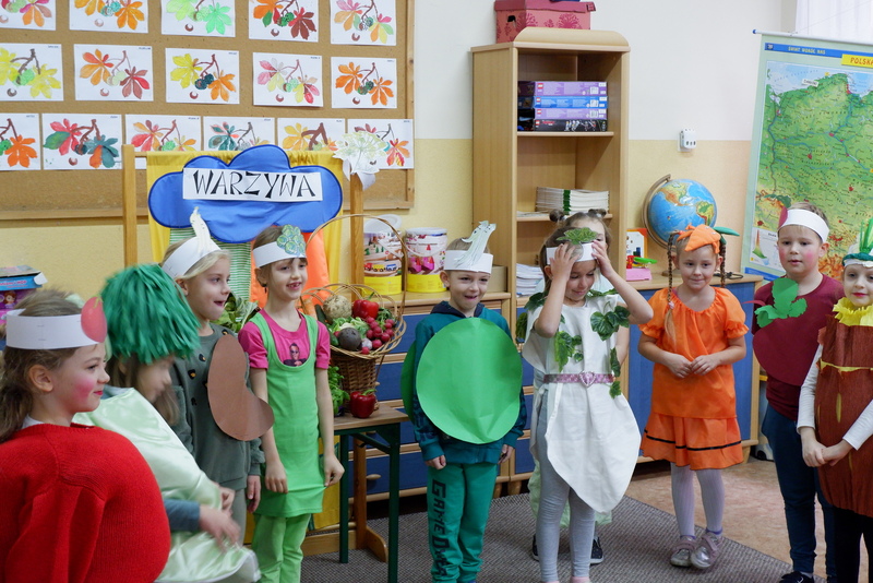 14 listopada 2019r. uczniowie kl. Id, uczestnicy koła teatralno-tanecznego wraz z wychowawczynią przygotowali dla swoich kolegów i koleżanek z pozostałych klas I inscenizację wiersza J. Brzechwy pt. „Na straganie”. W prosty i humorystyczny sposób, przy straganie świeżych warzyw w tle, przekazały wiedzę na temat produktów służących zdrowiu, które powinny pojawiać się codziennie na naszych stołach.