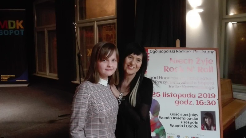 Jest nam niezmiernie miło poinformować, że laureatką tego konkursu została Maja Grońska z klasy 8e, która wyróżnienie odebrała z rąk Wandy Kwietniewskiej - wokalistki zespołu „Wanda i Banda”.