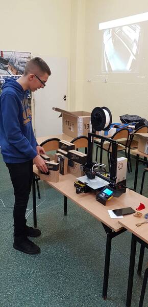26 listopada odbyły się zajęcia warsztatowe dla chętnych uczniów naszej szkoły z wydruku 3D. Zajęcia przeprowadził uczeń Zespołu Szkół Morskich - Aleksander Dogoda. Aleksander realizuje projekt 3DTHINK. Uczniowie dowiedzieli się jakie możliwości dają drukarki 3D, na czym polega modelowanie, jakie są rodzaje materiału do druku, oglądali przykładowe wydruki.