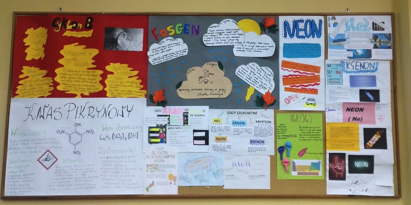 Wiosną br. uczniowie klas VII i VIII przystąpili do konkursu biologiczno-chemicznego, którego celem było rozwiązanie szeregu zagadek dotyczących budowy, właściwości i znaczenia dla organizmów wybranych pierwiastków chemicznych. Jesienią, także uczniowie klas VII i VIII, przygotowali ciekawe plakaty dotyczące wykorzystania właściwości pierwiastków w życiu codziennym oraz związków chemicznych, które negatywnie oddziaływają na organizmy żywe.