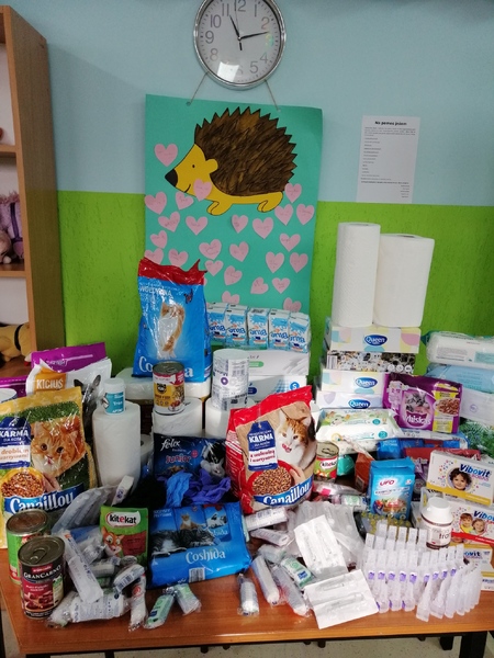 Z okazji dnia jeża, który obchodzony jest 10 października, na świetlicy zorganizowano zbiórkę karmy, witamin, środków opatrunkowych i higienicznych. Uczniowie i ich rodzice okazali się mieć „wielkie serca” i zbiórka była bardzo owocna. Wszystkie rzeczy zostały przekazane pani Karolinie Liput-Stasiak opiekującej się jeżami i prowadzącej stowarzyszenie „Jeżowe sprawy”. Większość jeży hibernuje w zimie, jednak niektóre są zbyt małe, słabe lub chore i to właśni dla nich jest ta pomoc. Zbiórka była również okazją do przekazania dzieciom wiedzy na temat tych sympatycznych i bardzo pożytecznych zwierząt będących pod ochroną. Zdobytą wiedza dzieci mogły pochwalić się rozwiązując test wiedzy o jeżach i zdobyć nagrody. Dzieci, które wsparły jeże w tak trudnym okresie otrzymały medale „Przyjaciela jeży” oraz słodki upominek. Podsumowaniem całego przedsięwzięcia było spotkanie z panią Karoliną, która opowiedziała o swojej codziennej pracy z jeżami, opiece nad nimi, przekazała dzieciom wiele ciekawostek. Najbardziej ucieszył dzieci gość, którego przyniosła pani Karolina – mały jeż.