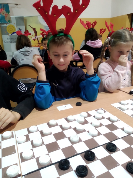 Warcaby to doskonaly trening myślenia, uczy działania w zespole, wyrabia refleks i szybką oreintację. Wiedzą o tym uczniowie naszej szkoły, którzy 7 grudnia wzięli udział w III Turnieju Warcabowym o Renifera Świętego Mikołaja. Na starcie zameldowąło się 98 zawodników z Miasta i Gminy Darłowo. Młodzi warcabiści świetnie spędzili wolny czas, ale także okazali wielkie serce dla czworonogów, przynosząc karmę dla zwierząt, która trafi do Stowarzyszenia My 3 koty i psy.