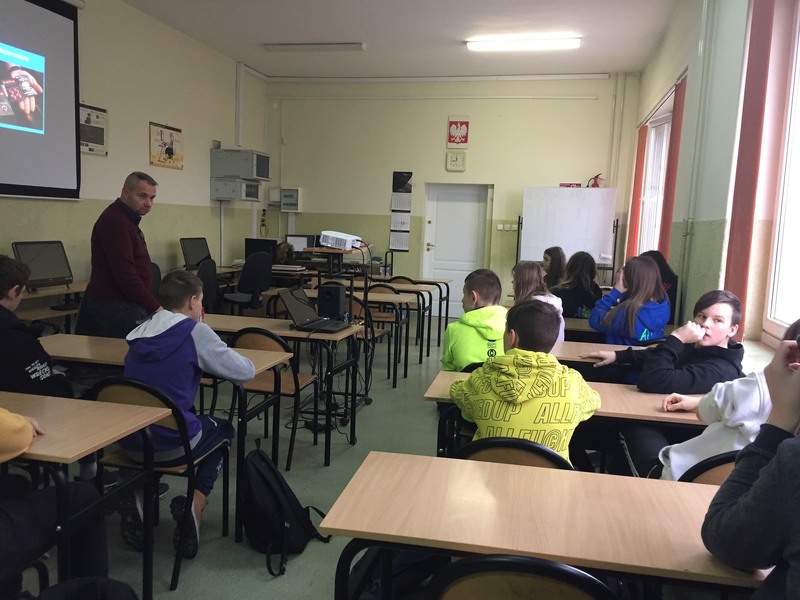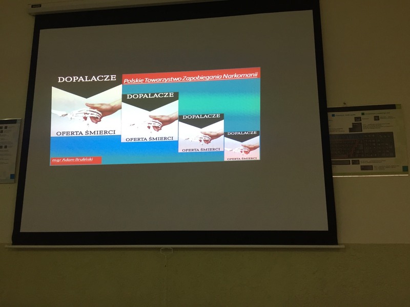 W dniu 13 grudnia odbyło się spotkanie ze specjalistą d/s profilaktyki uzależnień p. Adamem Brulińskim. Uczniowie klas 7D, 7C, 8B, 8C i 8D zapoznali się z tematem „Co wiemy MY na temat dopalaczy i środków narkotycznych? Jak należy im się skutecznie przeciwstawiać?”. Uczniowie z zainteresowaniem i zaangażowaniem brali udział w tej nietypowej lekcji. Przekazane informacje poszerzą ich kompetencje w zakresie przeciwstawiania się presji grupy rówieśniczej i wiedzę na temat szkodliwości i negatywnych skutków zażywania dopalaczy i środków psychoaktywnych.
