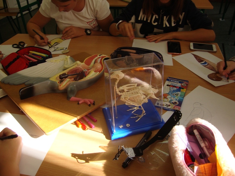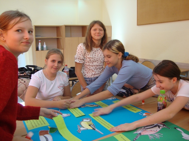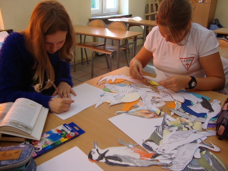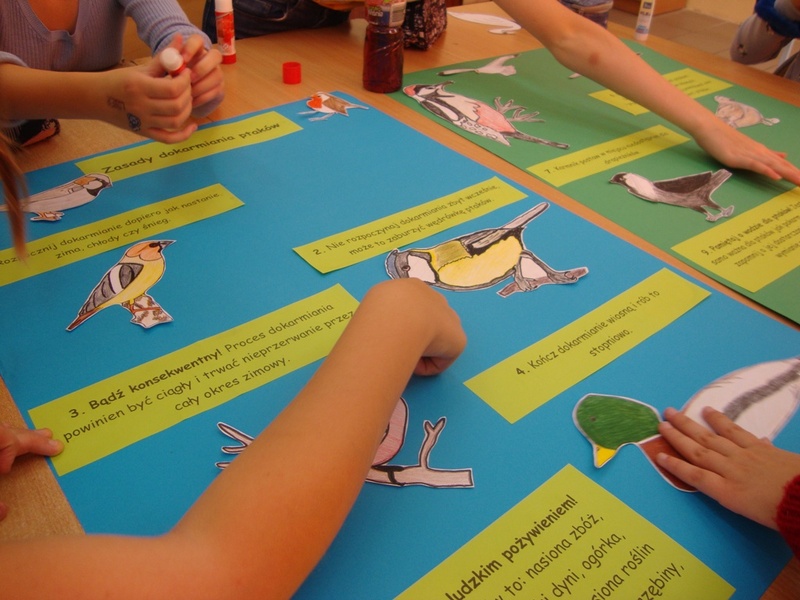 Dzięki zakupionym modelom, planszom i kartom edukacyjnym uczestnicy poznali budowę oraz tryb życia ptaków. Nauczyli się je rozpoznawać po wyglądzie i wydawanych przez nie odgłosach. Stworzyli także ulotki dla uczniów i rodziców nt. zasad prawidłowego dokarmiania ptaków. Pilnie studiowali literaturę przyrodniczą, wyszukiwali informacji i chętnie brali udział w dyskusji. Teraz z pewnością wiedzą, że za żywe stworzenia należy być odpowiedzialnym i każdy z nas powinien wobec nich wykazać się choć odrobiną empatii. Pamiętajmy! Nie karmmy ptaków ludzkim pożywieniem! Nie wolno podawać im: białego pieczywa, pokarmów solonych i produktów zepsutych! Mogą powodować one choroby, a nawet śmierć ptaków. Zastąpmy je: nasionami zbóż, kukurydzy, słonecznika, pestkami dyni, ogórka, płatkami owsianymi, owocami jarzębiny, nasionami roślin dziko rosnących, owocami aronii, róży, jarzębiny czy czarnego bzu.