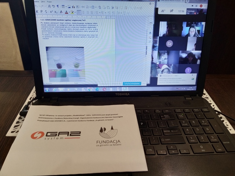 6 listopada 2020 r. „Trójkowi” tropiciele przyrody po raz kolejny uczestniczyli w bardzo interesujących zajęciach w ramach projektu Ekodetektywi, który realizowany jest dzięki grantowi finansowanemu z Funduszu Naturalnej Energii. Organizatorem konkursu jest Operator Gazociągów Przesyłowych GAZ-SYSTEM S.A., a partnerem konkursu Fundacja „Za górami, za lasami”. Miały to być kolejne zajęcia terenowe, ale z racji obowiązkowego zdalnego nauczania, odbyły się w formie online. Dzięki zakupionemu w projekcie sprzętowi i odczynnikom uczniowie mogli sprawdzić stan czystości okolicznych cieków wodnych. W zaistniałej sytuacji próbki wody z morza, rzeki i okolicznego stawu pobrał nauczyciel. Na zajęciach wszyscy pieczołowicie pracowali, odczytywali pomiary, analizowali je oraz sprawdzali w internecie dopuszczalne normy.