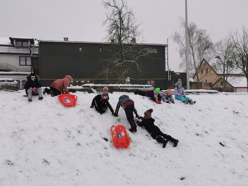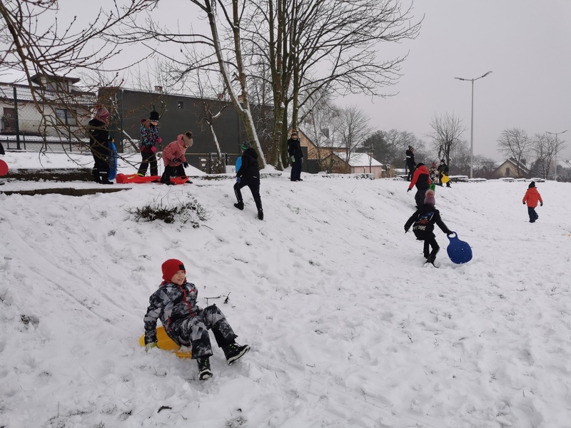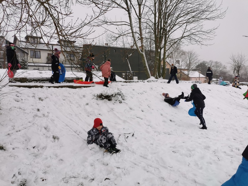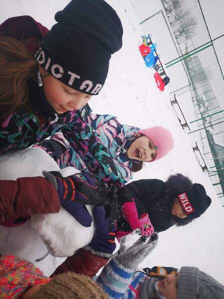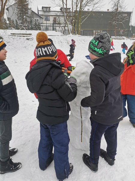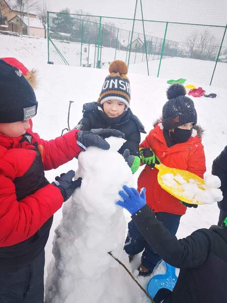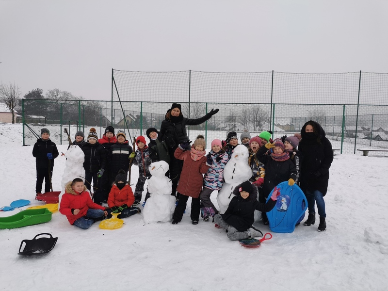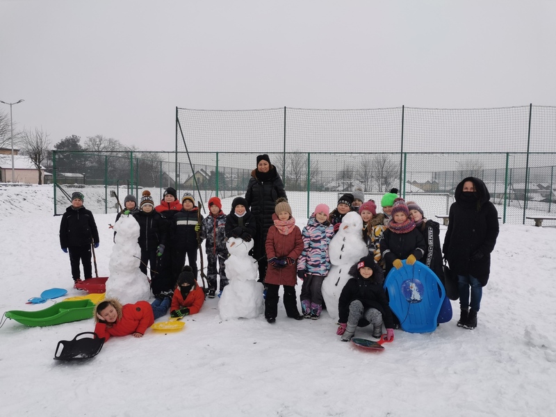 W dniu 19.01.2021r. białe szaleństwo opanowało uczniów klasy 2c. Lepienie bałwana, bitwa na śnieżki, zjeżdżanie na sankach, orzełki na śniegu, to jest to, co dzieci kochają najbardziej.