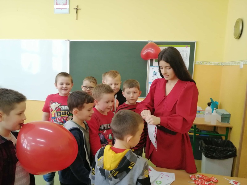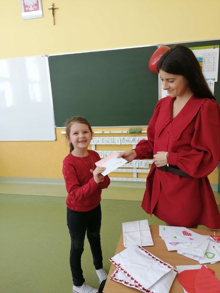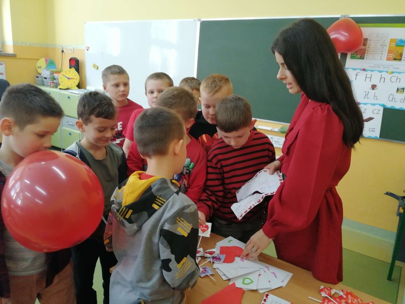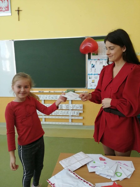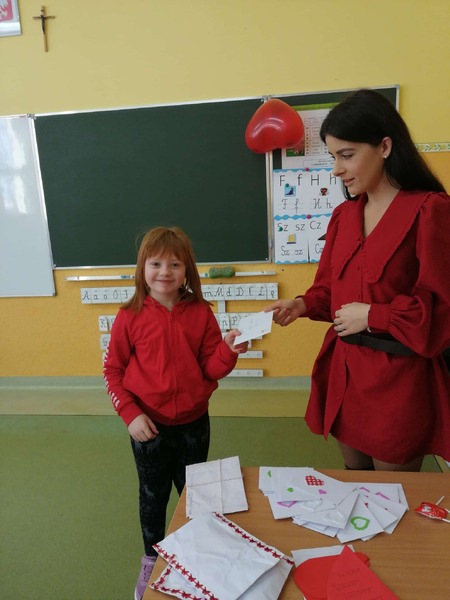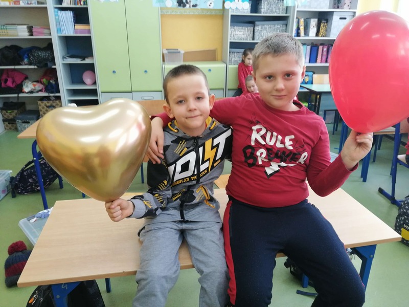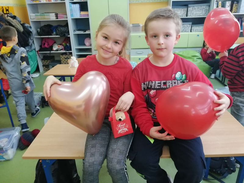 W poniedziałek 15.02, uczniowie z klasy ID obchodzili dzień świętego Walentego. Dzieci, które świadomie w ten dzień wdrożyły w swój ubiór czerwony akcent, przygotowały serduszka i kartki walentynkowe. W ten sposób pragnęły wyrazić swoją sympatię. Wszyscy uczniowie mogli zrobić sobie pamiątkowe zdjęcie z zaprzyjaźnioną koleżanka, czy najlepszym kolegą. Moc miłych gestów i słów dały wszystkim wiele radości i uczyniły ten dzień wyjątkowym.