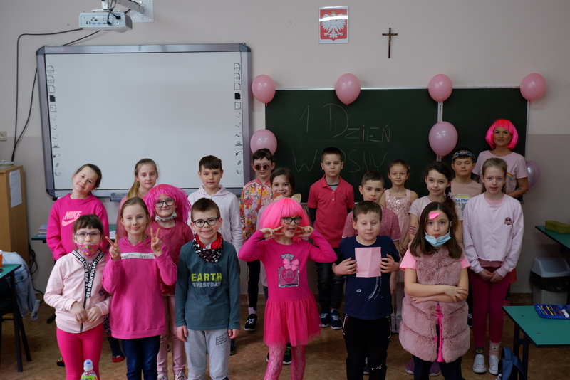 W piątek 19 marca uczniowie i nauczyciele klas I-III przyszli do szkoły ubrani w kolorowe, wiosenne, szalone stroje. Uczniowie klas starszych w wiosennych stylizacjach łączyli się podczas zajęć on-line.