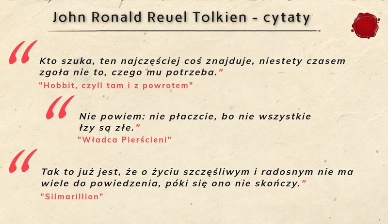 Uczestnicy lekcji języka polskiego poznali wiele ciekawostek ze świata książek tego pisarza - począwszy od muzyki Äinurów i stworzenia świata, kończąc na trzeciej erze i pierścieniu władzy. Tematem po powstaniu świata, był Valinor i Valarowie, obrócenie się na złą stronę potężnego Melkora oraz jego późniejsze schwytanie. Następnie omówiony został moment przybycia elfów do wcześniej wspomnianego Valinoru, ich rozwój w potężnym królestwie, który poskutkował wykuciem przez Fëanora najpotężniejszych klejnotów - Silmarillów. Później opowiedziana została pokrótce pasjonująca historia tychże kryształów. Pod lupę został wzięty także trudny i ciężki w wymowie język z rodu Calaquendi (elfów), który nazywa się Quenya. Poza ciekawostkami ze świata literatury Tolkiena, zaprezentowany został także jego życiorys oraz twórczość. Ku zdziwieniu słuchających, John nie napisał tylko „Władcy pierścieni”, „Hobbita” i mniej znanego „Silmarillionu”, lecz także wiele innych dzieł, choćby: „Niedokończone opowieści Śródziemia i Númenoru”, „Upadek Gondolinu”, balladę „Beren i Lúthien” i „Dzieci Húrina”.