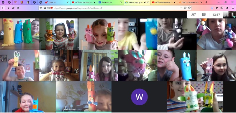 Na zdalnych lekcjach nie może być nudno, dlatego uczniowie z klasy 1E postanowili trochę pokolorować szarą rzeczywistość i stworzyć niestandardowe zajączki wielkanocne. Zające zostały wykonane z rolki po papierze toaletowym, przy użyciu farb, kolorowego papieru i innych dodatków, ale co najważniejsze - uczniowie włożyli w to swoje serca i zaangażowanie.