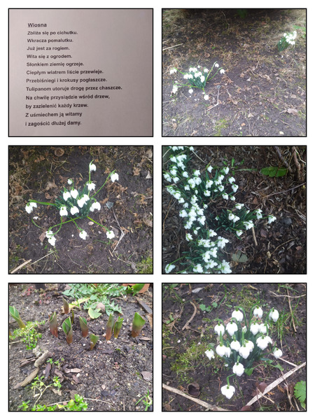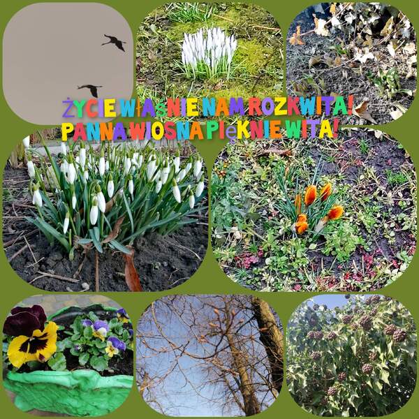 Z utęsknieniem czekamy na pogodne niebo i pełny rozkwit wiosennych uroków. Niektórzy z Was dostrzegają jej oznaki i dają sygnał, że na swojej drodze spotkali WIOSNĘ. Zobaczcie, co zaobserwowali: Katarzyna Bagnucka z klasy 4A, Wojciech Brzózka i Szymon Górniak z klasy 4C, Wiktor Wilczewski z klasy 6A, Miłosz Kupracz z klasy 6B oraz Oliwia Stefaniak z klasy 6C.
