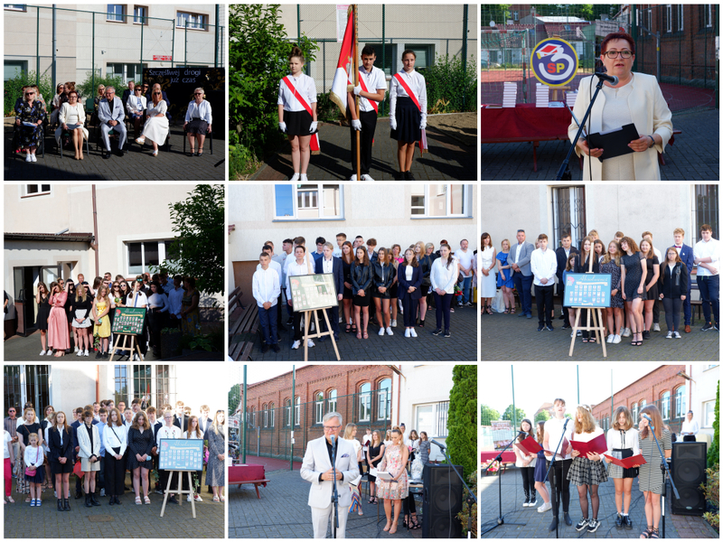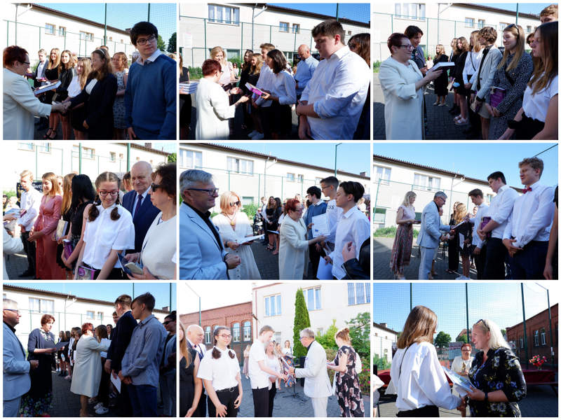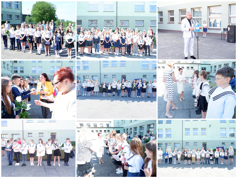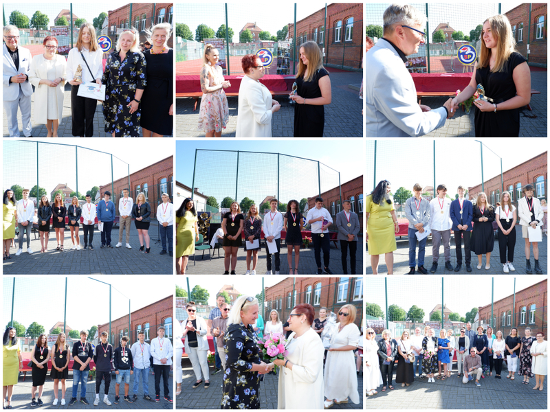 Uroczyste zakończenie roku szkolnego było okazją do pożegnania 82 uczniów klas VIII. Najlepszych 32 uczniów odebrało świadectwa z wyróżnieniem, stypendia ufundowane przez Burmistrza Miasta Darłowo i nagrody książkowe. Były też listy gratulacyjne dla rodziców, podziękowania oraz medale za godne reprezentowanie szkoły podczas zawodów sportowych i związane z tym sukcesy. Nagrodę “Primus inter pares” - pierwszy wśród równych sobie - ufundowaną przez Radę Rodziców otrzymała uczennica klasy 8C - Agata Kuriata.