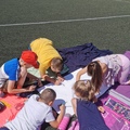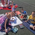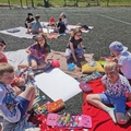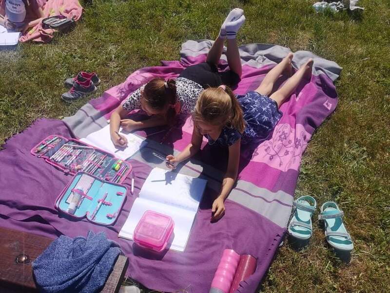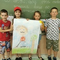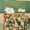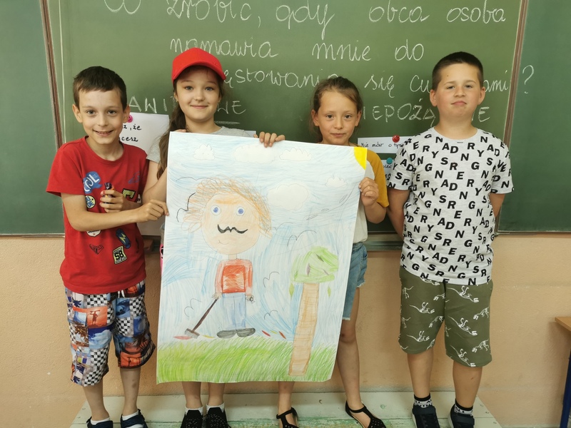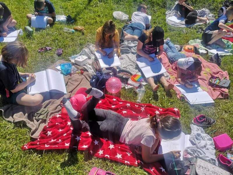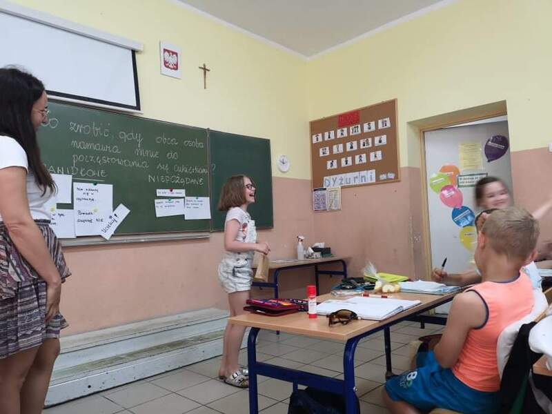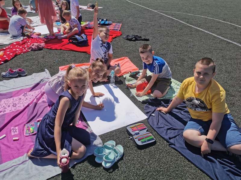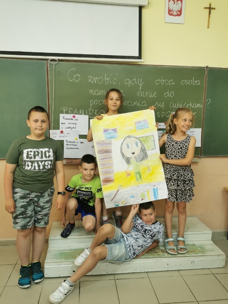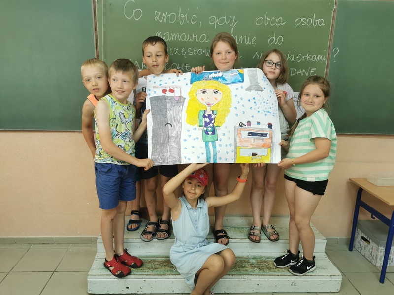 Lekcje na kocach „pod chmurką”? Jak najbardziej! Dzieci je uwielbiają. Zajęcia w każdym miejscu mogą być ciekawe i wartościowe. Bajkoterapia, odgrywanie ról i scenek, prace plastyczne, burza mózgów i praca w grupach – za pomocą metod aktywizujących klasa 2c realizowała działania profilaktyczne Programu „Cukierki” zorientowane na uczniów w sytuacjach zagrożenia.