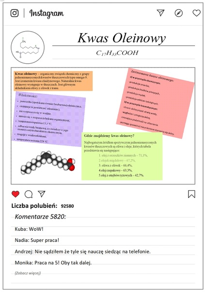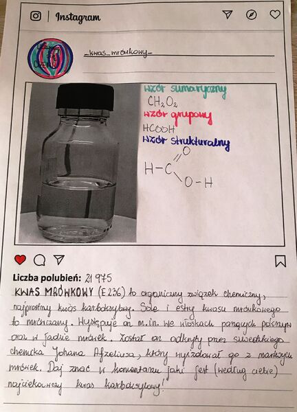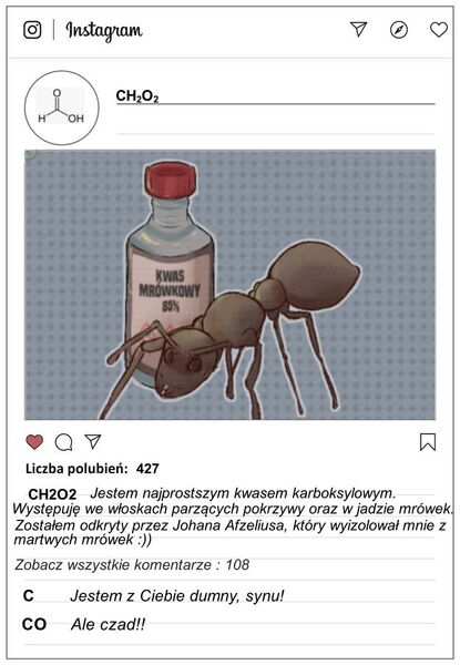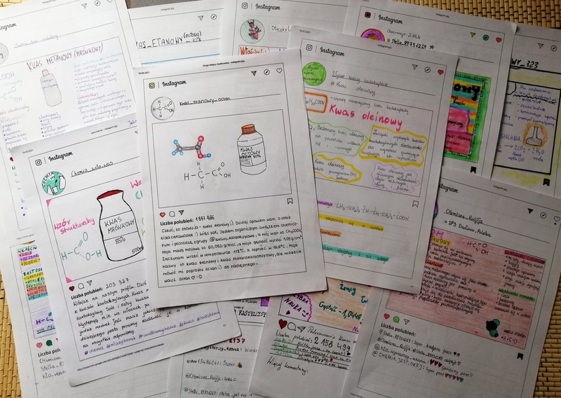 Jak zachęcić uczniów do nauki chemii? Wykorzystując narzędzia bliskie każdemu z nas we współczesnym świecie - portale społecznościowe. Oto kwasy karboksylowe prezentujące się na Instagramie dzięki wiedzy i umiejętnościom uczniów klas ósmych.