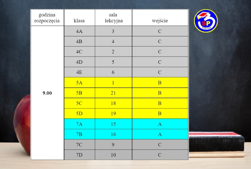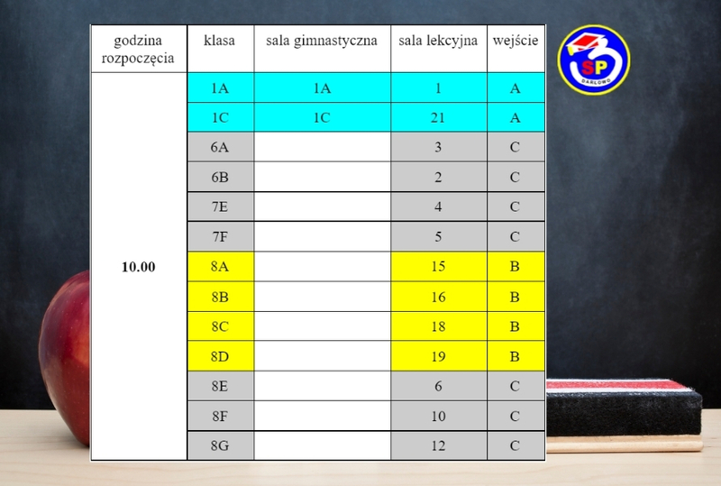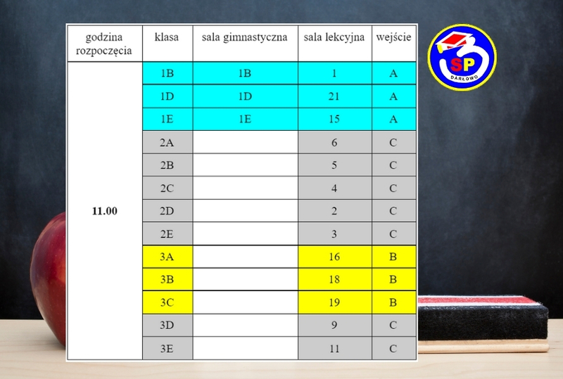 Uczniowie klas pierwszych z jednym rodzicem/opiekunem wchodzą bezpośrednio na dużą salę gimnastyczną, a po uroczystości przechodzą z wychowawcami do wyznaczonych sal lekcyjnych.