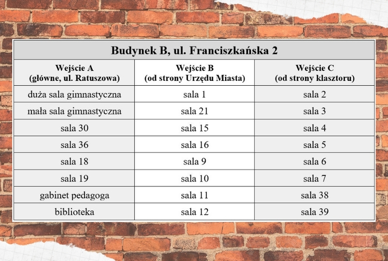 Prosimy uczniów o zapoznanie z grafikiem wejść.