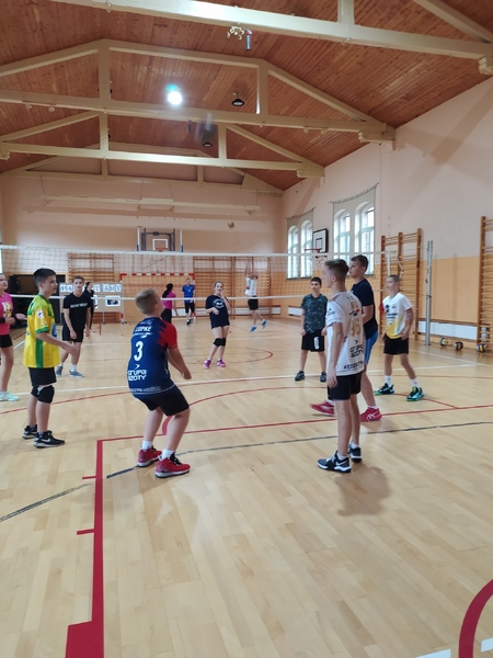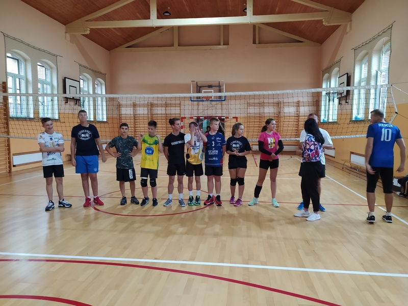 W poniedziałek odbył się mecz piłki siatkowej nauczyciele kontra uczniowie. Mecz zakończył się remisem 1:1.