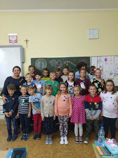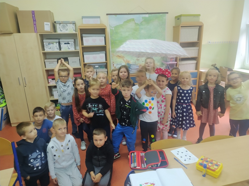 Mnóstwo kolorowych krop, kropek, kropeczek zagościło na szkolnych korytarzach. Uczniowie w tym dniu przyszli ubrani w kropki. Podczas lekcji oglądaliśmy film „The Dot” oraz rozmawialiśmy na temat wiary we własne możliwości. Na zajęciach gościły kropki w różnym wydaniu. Nasi uczniowie wykonali kropkowe prace plastyczne, zadania matematyczne z kropką w tle i wiele, wiele innych.