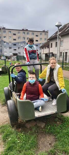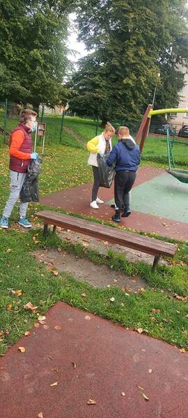 Uczniowie ze specjalnymi potrzebami edukacyjnymi dnia 17.09. br. wzięli udział w akcji „Myślę, więc nie śmiecę.” Dzieci zaopatrzone w jednorazowe rękawiczki i worki na śmieci, zabrały się ochoczo do oczyszczenia terenów placów zabaw. Dzięki pozytywnemu zmotywowaniu udało się zebrać dwa worki śmieci. Uczniowie dowiedzieli się i przećwiczyli zasady segregowania odpadów podczas prac plastycznych i gier. Za ciężką pracę otrzymali słodką nagrodę. Udział w akcji utrwalił u uczniów nawyki dbania o środowisko.