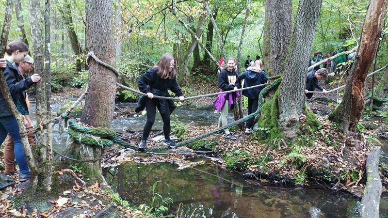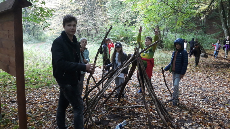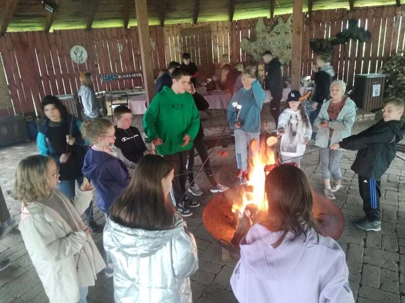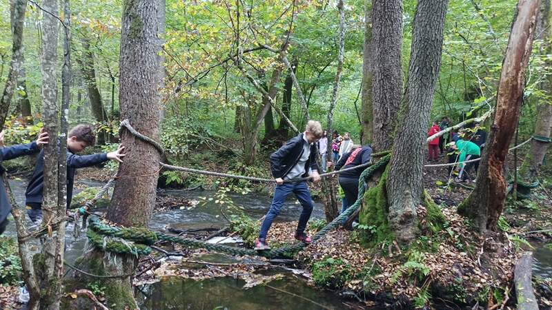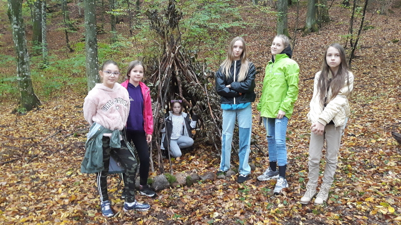 6 października 2021 roku uczniowie klasy 4 a oraz 8 a wybrali się na wycieczkę do Pałacu pod Bocianim Gniazdem, której celem była aktywna integracja na łonie natury oraz kształtowanie świadomości ekologicznej. Swoją przygodę rozpoczęli wyprawą do lasu, gdzie czekały na nich zajęcia z pionierki obozowej. Uczniowie poznali techniki przetrwania w lesie, a następnie w sześcioosobowych grupach wykazali się ogromnymi zdolnościami oraz niesamowitą współpracą budując szałas oraz rozpalając ogień przy pomocy krzesiwa. Dużą atrakcją i wyzwaniem okazało się przejście po moście linowym nad rzeką oraz pokonanie bardzo stromego wzniesienia.