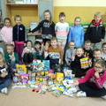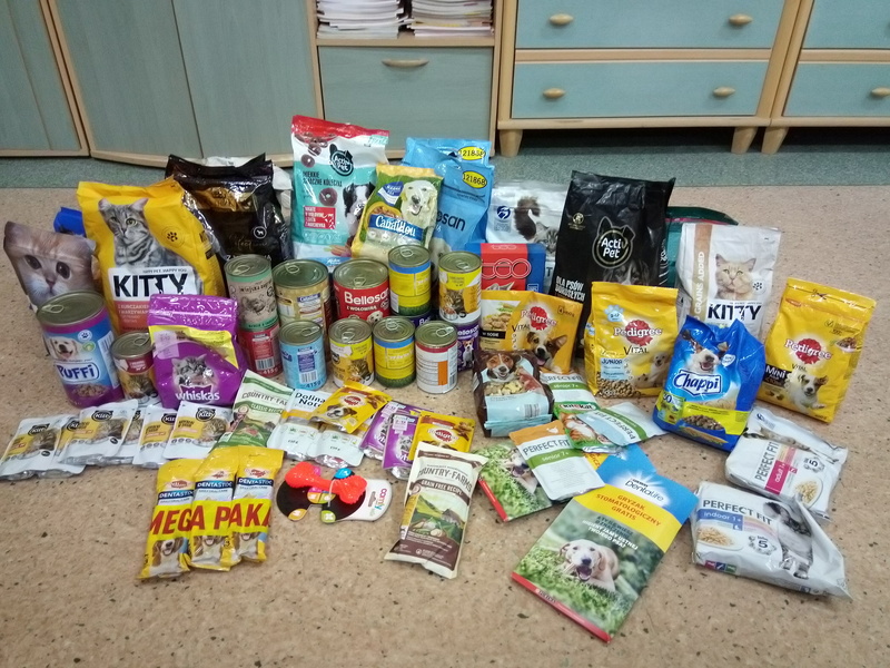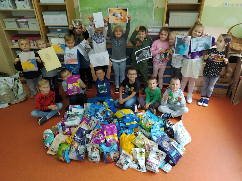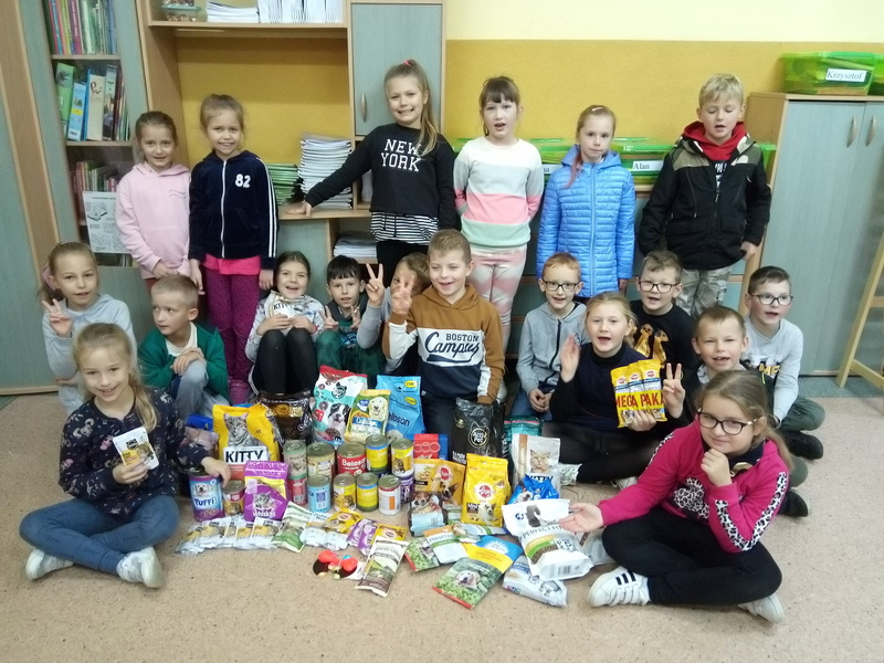 Jak co roku w naszej szkole organizowana była zbiórka karmy oraz innych akcesoriów dla zwierząt. W tegorocznej zbiórce zebranych zostało kilkadziesiąt kilogramów karmy dla zwierząt - kotów i psów, a także koce, miski, zabawki i ubrania dla zmarzluchów. Z zebranej ilości zwierzaki ze stowarzyszenia „My 3 koty i psy” na pewno będą miały wspaniałą ucztę.