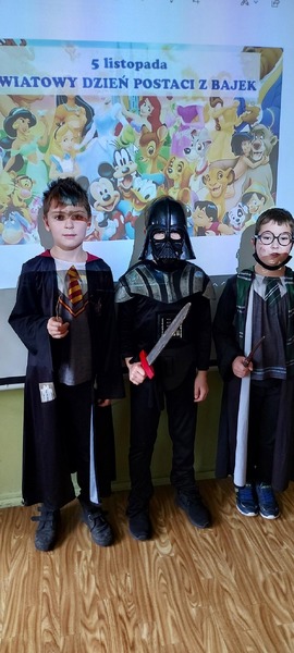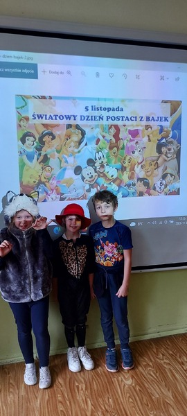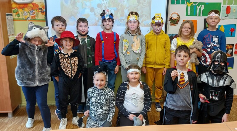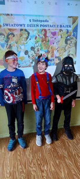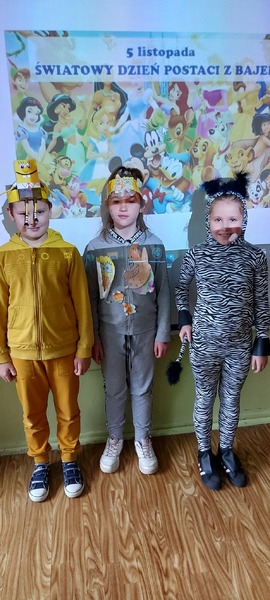 5 listopada obchodzimy Dzień Postaci z Bajek. Klasa 3e postanowiła uczcić ten dzień przebraniem się za ulubioną postać z bajki. W związku z tym dzisiejszego dnia na lekcji zawitali m.in. Złotowłosa z misiem, Kot w butach, zebra Marti, Harry Potter, Sponge Bob, Wilk z Czerwonego Kapturka oraz Mario Bros. Uczniowie opowiadali o swoich ulubionych bajkach, rysowali ulubioną postać, a na koniec wspólnie obejrzeliśmy bajkę.