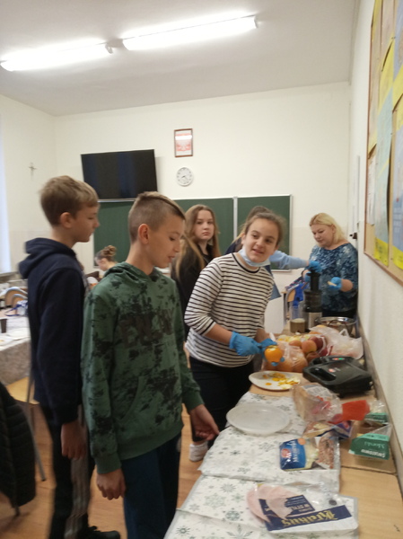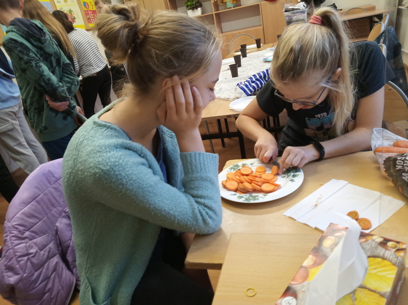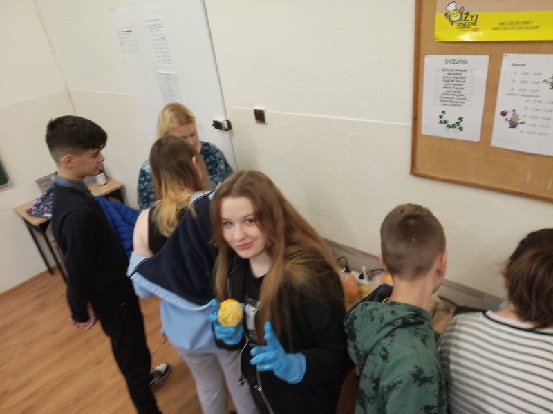 Na zajęciach z wychowawcą uczniowie klasy 7B w ramach Dnia Walki z Otyłością i profilaktyki zdrowia poznawali zasady zdrowego odżywiania się. Pomogły im materiały z programu „Gotuj się na zmiany z Winiarami” – plansze i prezentacja „ABC odżywiania” oraz zajęcia praktyczne. Uczniowie przygotowali owoce i warzywa (jabłka, pomarańcze i marchewki), a następnie zrobili w wyciskarce sok. Był przepyszny, odżywczy i bez dodatków konserwantów czy cukru. Taka lekcja wyszła wszystkim na zdrowie!