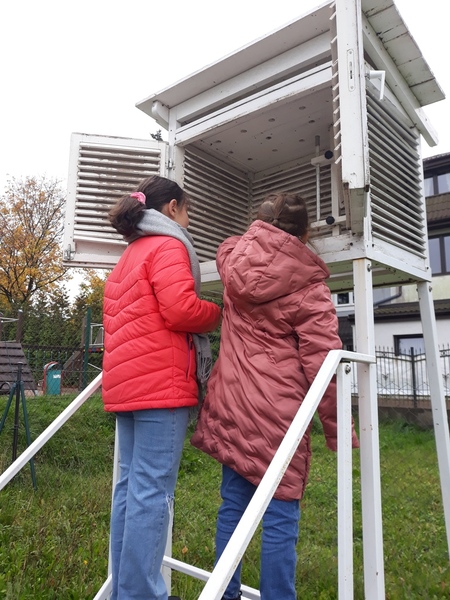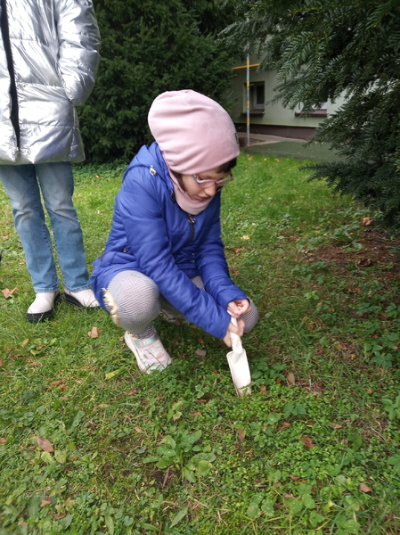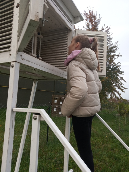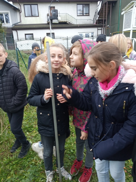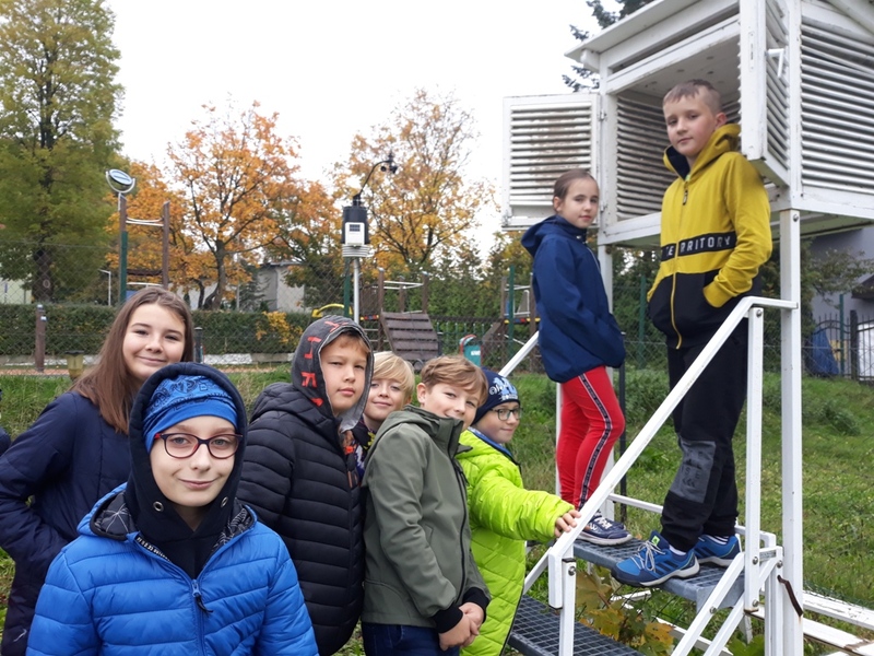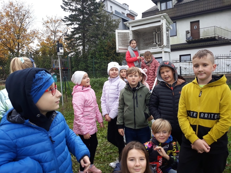 Jesień to dobry czas do obserwacji zjawisk przyrodniczych. Uczniowie klas 4-tych podczas lekcji przyrody bacznie obserwowali zmieniającą się pogodę. Aby poznać metody pomiaru składników pogody, uczniowie odwiedzili szkolną stację meteorologiczną będącą częścią projektu Budżetu Obywatelskiego Darłowa „Naukowy ogród pełen tajemnic”. Dzieci zapoznały się z przyrządami pomiarowymi, odkrywały zasady ich działania oraz odczytywały wskaźniki dla poszczególnych elementów pogodowych. Szczególne zainteresowanie wzbudzała klatka meteorologiczna Stevensona, w której znajdowały się psychrometr Augusta i termometry ekstremalne do odczytywania temperatur w określonym czasie. Uczniowie zapoznali się także z działaniem wiatromierza, odczytywali pomiary z deszczomierzy i tyczki śniegowej. Po wizycie w stacji meteorologicznej uczniowie przez kilka dni prowadzili własne obserwacje pogody, a wyniki zapisywali na specjalnej karcie. Zaciekawieni uczniowie po lekcjach kilkakrotnie odwiedzali stację meteo, aby obserwować zmieniający się kierunek wiatru na wiatromierzu. Zajęcia terenowe z klasą 4E zakończyły się także posadzeniem cebulek kolorowych krokusów, które wczesną wiosną będą cieszyły oczy wszystkich uczniów.