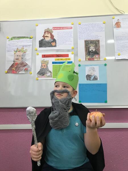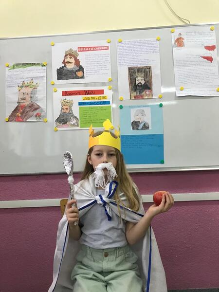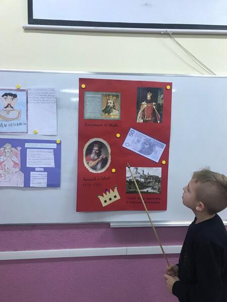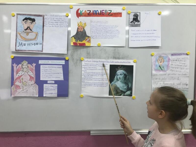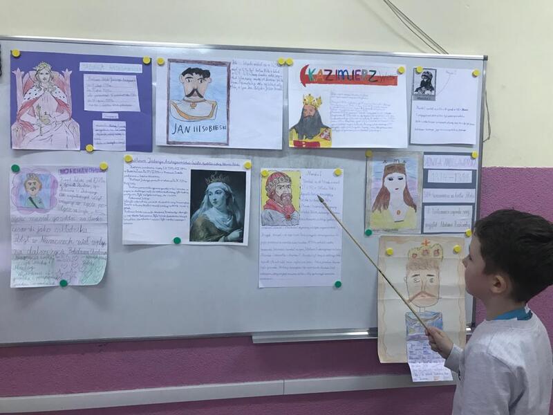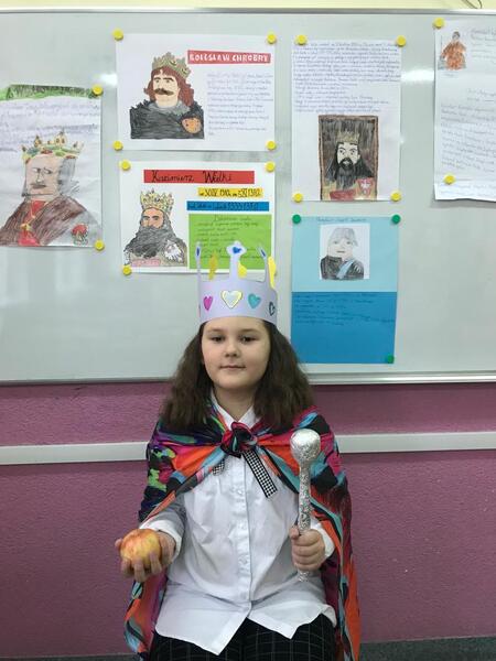 W ostatnich dniach uczniowie klasy III D z wielkim zaangażowaniem uczestniczyli w lekcjach dotyczących historii Polski. Szczególne zainteresowała ich tematyka związana z powstaniem państwa polskiego. Dzieci poznały legendy o Lechu, Czechu i Rusie, a także o Piaście i Popielu. Każdy przygotował prezentację na temat wybranego władcy Polski w postaci plakatu, na którym były ujęte portrety książąt i królów (często wykonane samodzielnie przez uczniów) oraz informacje dotyczące najważniejszych dokonań monarchów czy słynnych bitew. Dużo satysfakcji przyniosła im również lekcja, na której mogli poczuć się jak królowe i królowie. Tworzyli berła, przygotowali peleryny z różnych materiałów tekstylnych, ale przede wszystkim skupili się na wykonaniu najważniejszego atrybutu króla, czyli – korony.