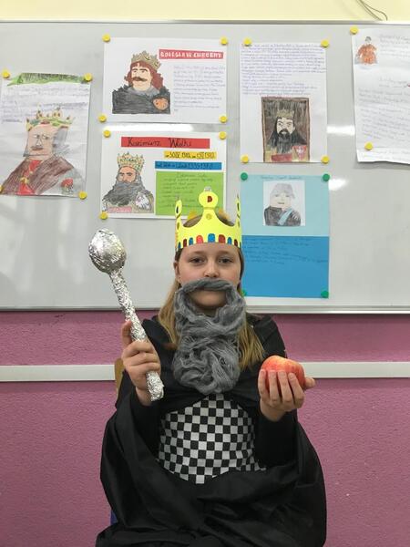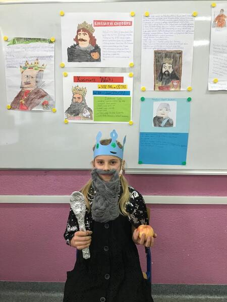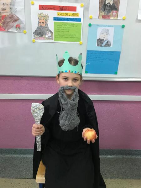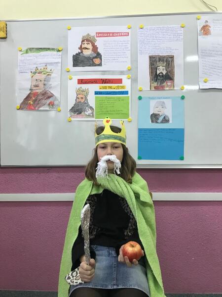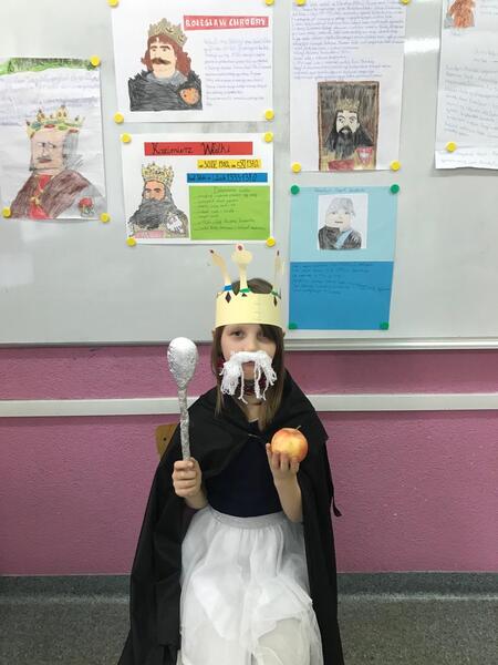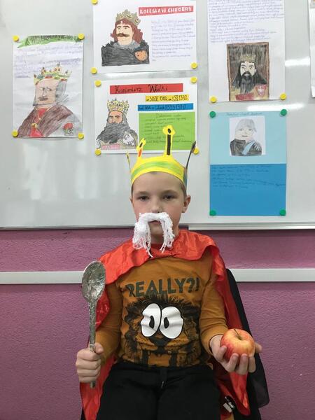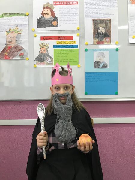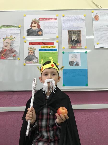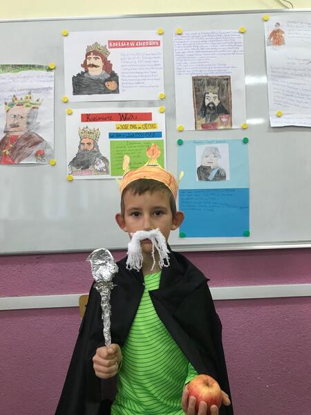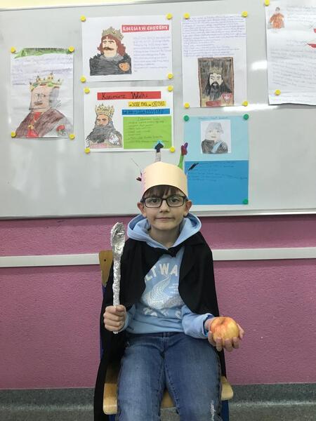 Na koniec każdy uczeń pozował do portretu, wcielając się w rolę wybranego przez siebie władcy Polski.