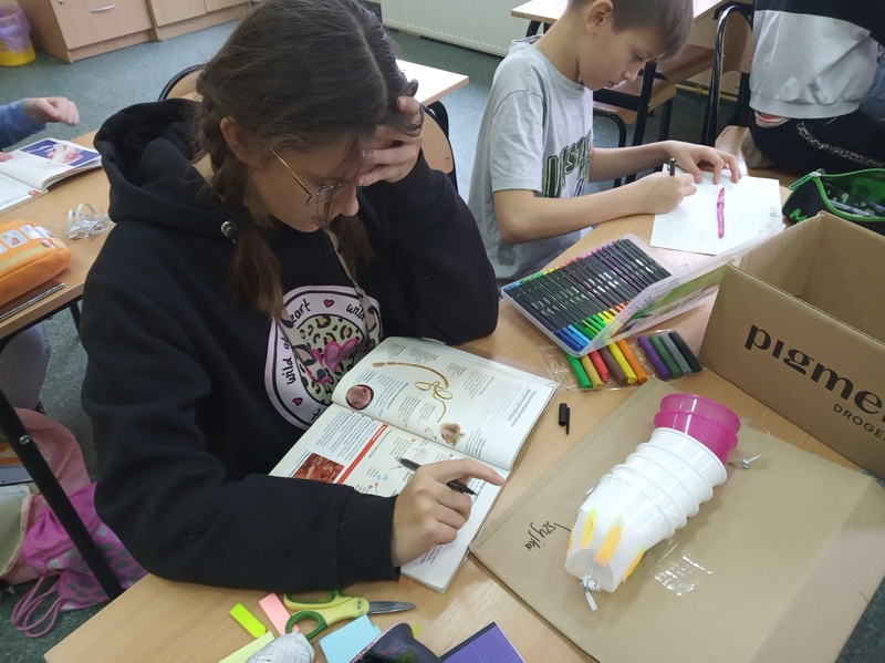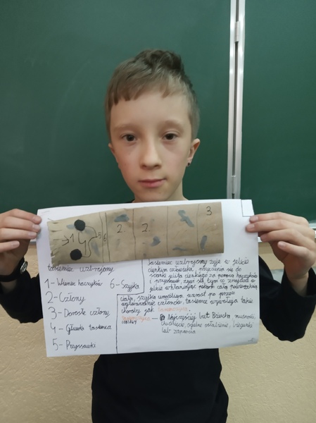 Na lekcji biologii uczniowie klasy 6A w twórczy sposób powtarzali i utrwalali wiadomości o ostatnio poznanych bezkręgowcach.