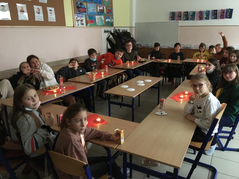 Czarowi wieczoru andrzejkowego ulegli również uczniowie klasy 4c. W czasie wspólnej zabawy w gronie rówieśników rozmawialiśmy o tradycjach i zwyczajach związanych z dniem św. Andrzeja. Nie mogło zabraknąć również tradycyjnego wróżenia, bo któż nie chciałby wiedzieć, co czeka go w przyszłości. Nie było to lanie wosku, ale były to zabawy, w których uczniowie mogli dowiedzieć się co czeka ich w przyszłości: szczęście, pieniądze, piękne życie czy może jakaś inna niespodzianka. Dzieci wiedziały, że wróżby mają tylko charakter dobrej zabawy. Wiele emocji dostarczyła uczniom wróżba z butami osobno dla dziewcząt i chłopców. Wszyscy skrupulatnie pilnowali kolejności przestawianych butów. W przerwie przy wspólnym stole smakowaliśmy różne słodkie przekąski przygotowane przez rodziców. Były przepyszne!
