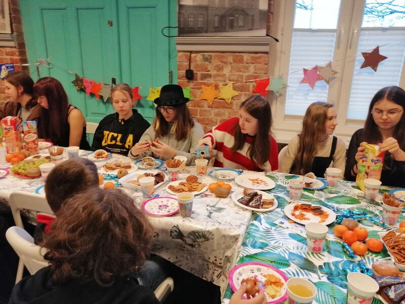 We wtorek 30 listopada 2021 r. wolontariusze Szkolnego Klubu Wolontariusza „Pomocna Dłoń” zorganizowali zabawę andrzejkową dla podopiecznych Dziennego Ośrodka Rehabilitacyjno-Terapeutycznego. Uczniowie przygotowali dekoracje i poczęstunek. Samodzielnie upieczone ciasto i ciasteczka z wróżbą były dumą naszych wolontariuszy. Tradycyjnie nie mogło zabraknąć wróżb, przy których było dużo śmiechu. Uczestnicy zabawy dowiedzieli się co ich czeka w przyszłości, jak będzie miał na imię przyszły mąż czy żona lub jaki zawód będą wykonywać. Wspólne tańce, rozmowy i zabawa dostarczyły wszystkim masę radości i pozwoliły jeszcze bardziej się zintegrować.