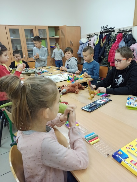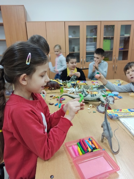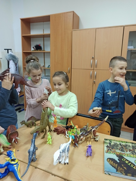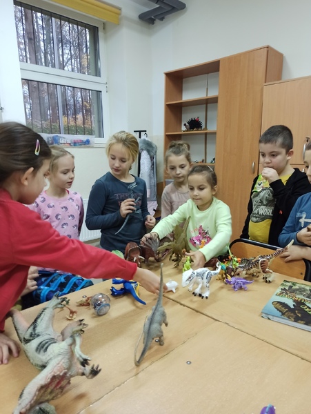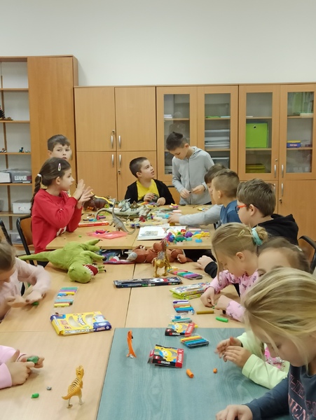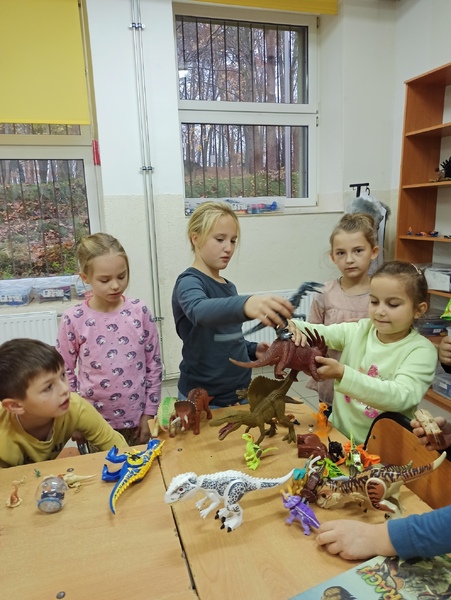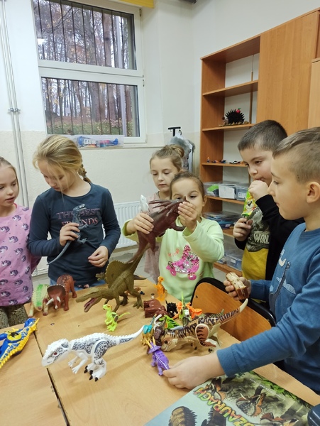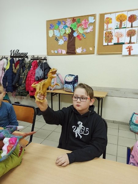 W klasie 2e wielu uczniów interesuje się paleontologią i archeologią, a szczególnie prehistorycznymi gadami. 17 listopada uczniowie ci zaprezentowali swoje kolekcje dinozaurów, a także podzielili się wiedzą na ich temat. Oglądano albumy książkowe, modele gadów, film. Podsumowaniem zajęć było lepienie dinozaurów z plasteliny. Wymiana wiadomości była bardzo ciekawym doświadczeniem. Wkrótce nowe tematy interesujące drugoklasistów.