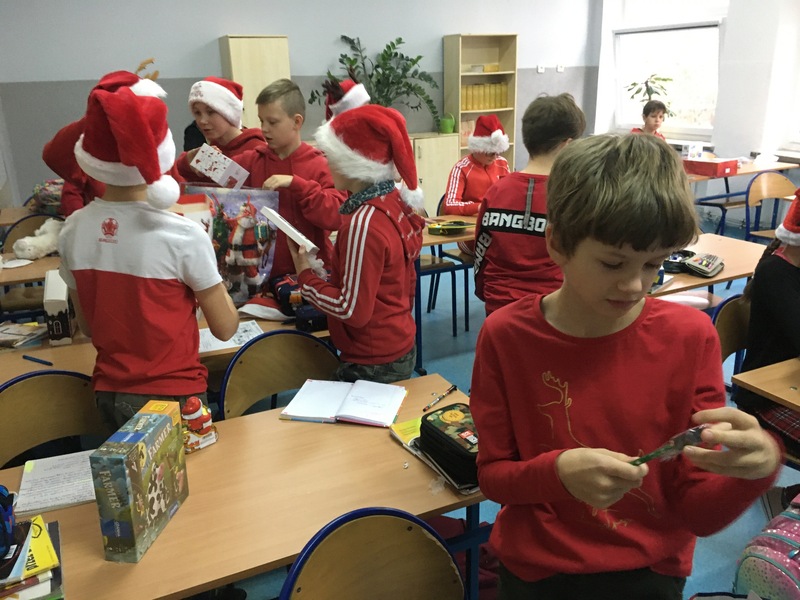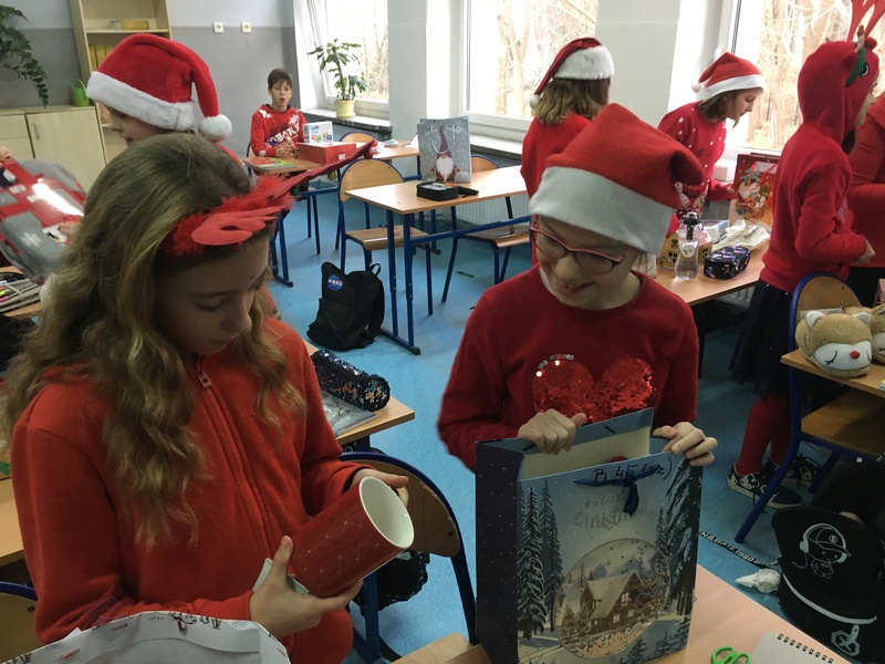 W klasie IV c już od tygodni trwały przygotowania do tego święta. Wszyscy od dawna czekali na ten dzień. Zgodnie ze zwyczajem uczniowie postanowili obdarować się prezentami. Emocje były wielkie, ponieważ wiedzieli tylko, czy osoba, której kupują prezent jest dziewczynką, czy chłopcem. I wreszcie nastał 6 grudnia! W tym dniu panowała wspaniała atmosfera. Wszyscy uczniowie postarali się oddać mikołajkowy klimat. Wszyscy bez wyjątku ubrali się stosownie na tę okoliczność, na czerwono i w czapkach Mikołaja na głowach. Przy pomocy „trzech Mikołajów” uczniowie otrzymali podarunki ciesząc się wspólnym obdarowywaniem się prezentami. Gdy wszystkie prezenty trafiły do rąk adresatów, nastąpiła ich prezentacja. Pozytywnym emocjom nie było końca. Wspólne fotografie, przygotowany poczęstunek i uśmiechy na ich twarzach to dowód na to, że dzień ten był bardzo udany.