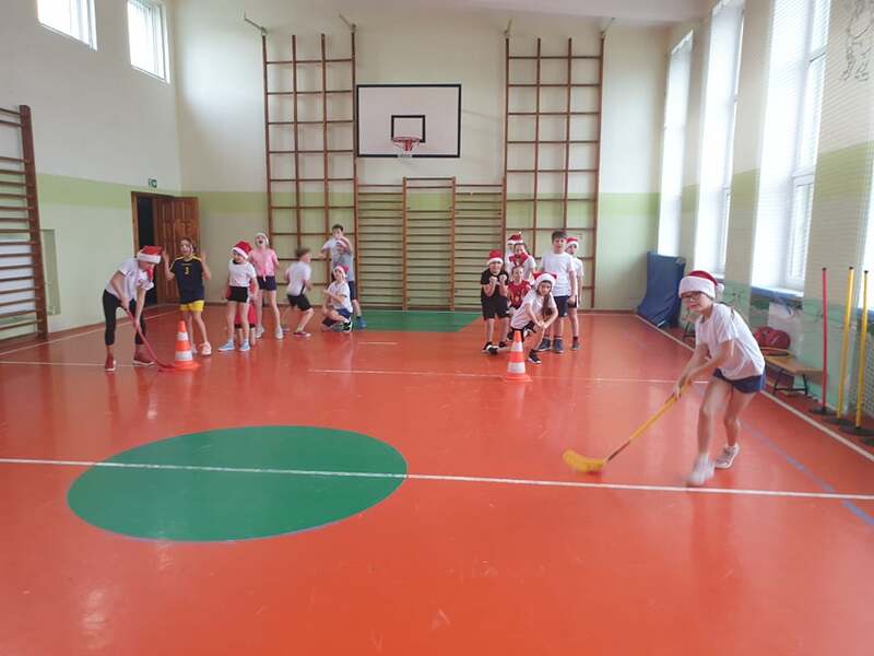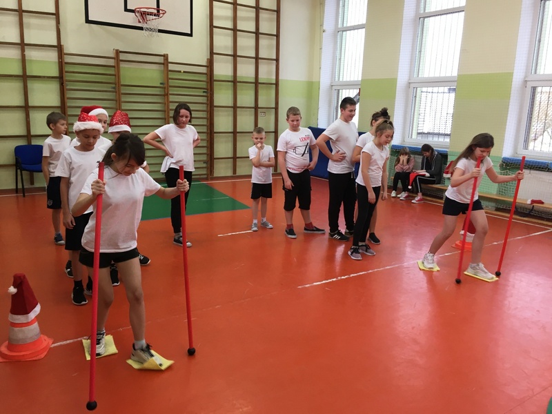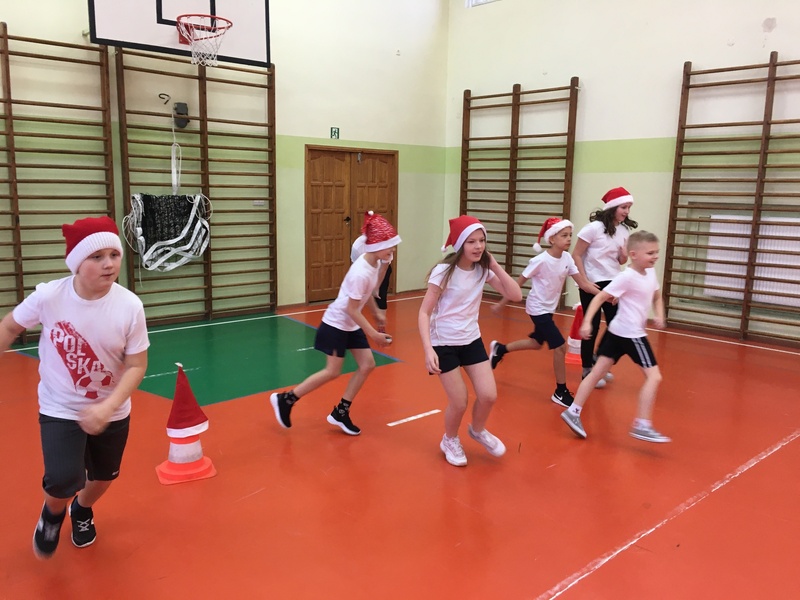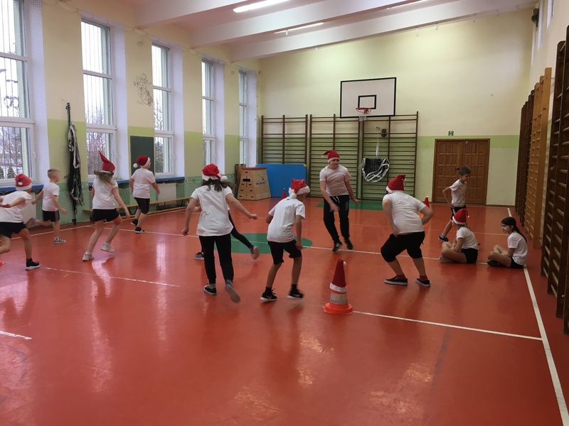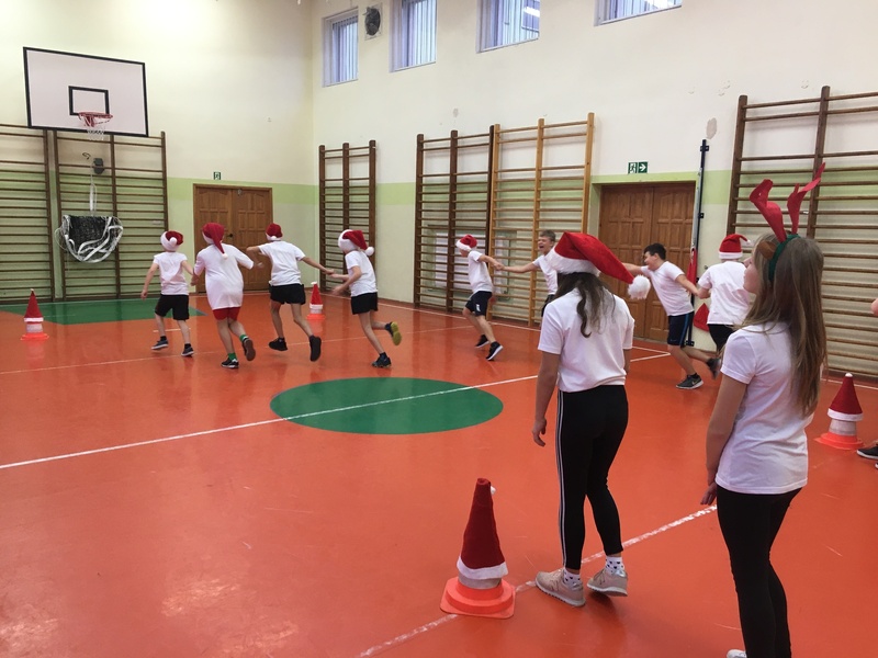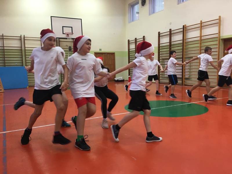 Jak co roku - 6 grudnia - nasi uczniowie spędzili czas na lekcjach wychowania fizycznego aktywnie celebrując Dzień Świętego Mikołaja. Uczniowie poprzez udział w zabawach związanych z Mikołajkami propagowali sport na wesoło. Po krótkich pogadankach dotyczących tradycji mikołajkowych, rozgrzewkach i zabawach ruchowych uczniowie rywalizowali ze sobą w konkurencjach sportowych. Zawody były niezwykle emocjonujące, a uczniowie spisali się wzorowo. Pokazali jak wspaniale rywalizują i jednocześnie bawią się podczas zmagań sportowych. Nie zabrakło również bardzo żywego dopingu ze strony kolegów i koleżanek. Wiele emocji dostarczyła „Jazda na nartach” z wykorzystaniem kawałków materiałów jako nart i tyczek od stojaków jako kijków oraz wieńcząca konkurencja „Świąteczny pociąg”. Mikołajki były bardzo radosne, upłynęły w bardzo sympatycznej i aktywnej atmosferze.
