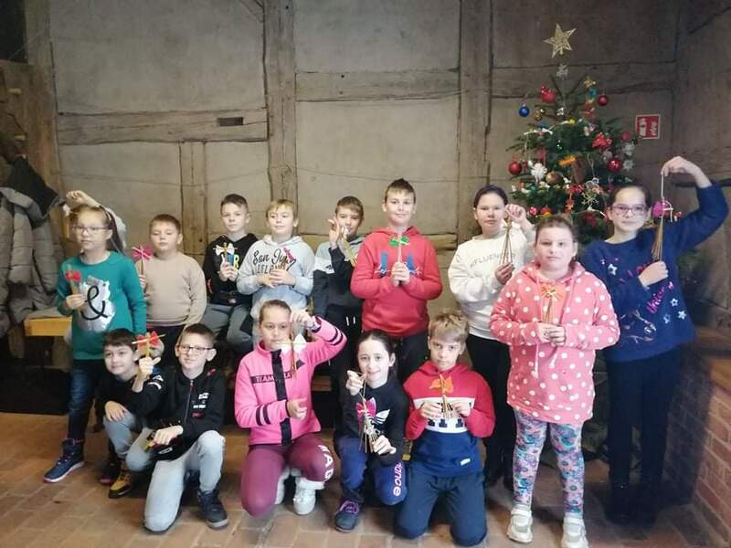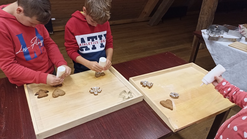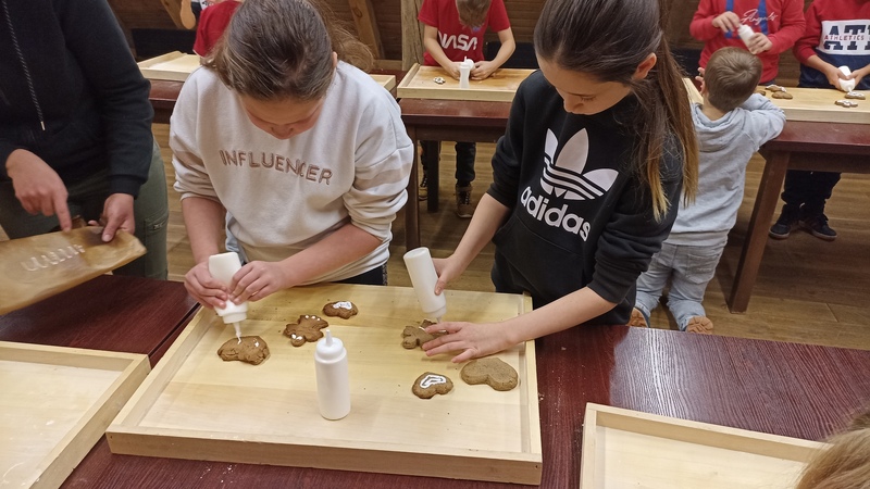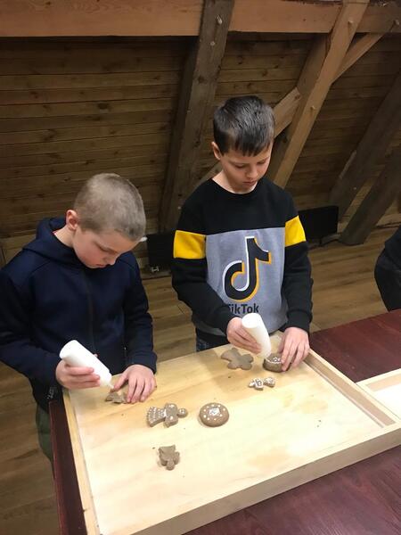 10 grudnia 2021 r. klasy 3A i 3D wraz z wychowawczyniami, wyjechały na warsztaty bożonarodzeniowe do Swołowa. Uczniowie poszerzali tam wiedzę na temat tradycji i zwyczajów Świąt Bożego Narodzenia obchodzonych w Polsce, jak i w bliskim dla nich regionie - na Kaszubach. Mieli również możliwość samodzielnego wyrabiania ciasta, umieszczania go w odpowiednich formach, z których powstały pierniki o różnym kształcie. Po wypieku w piecu chlebowym, ozdabiali je lukrem tworząc na nich piękne wzory. Następnie, poznali technikę tworzenia ozdób choinkowych z mokrej słomy, które 100 lat temu były bardzo popularne na Pomorzu.