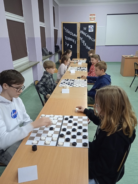 Dnia 18 marca w Szkole Podstawowej nr 3 w Darłowie rozegrano Szkolny Turniej w warcabach 100-polowych. W tym dniu na liście startowej zameldowało się 17 zawodników z klas I-VIII, podzielonych na kategorie wiekowe: do lat 12 oraz do lat 15. Zawodnicy grali systemem szwajcarskim na dystansie 9 rund.