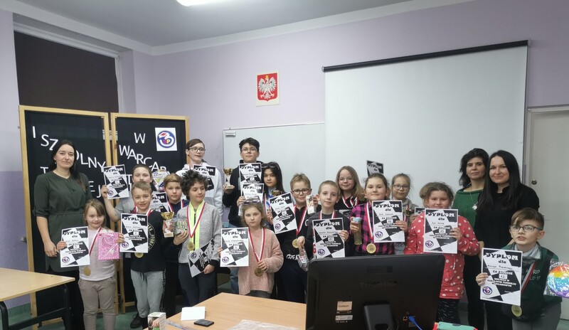 Najlepszym zawodnikiem w kategorii juniorzy do lat 15 okazał się Bartosz Paszkowski – uczeń klasy 8 d zdobywając maksymalną ilość punktów. Uczeń klasy 1 e – Alan Sołtan został najlepszym warcabistą w kategorii do lat 12 zdobywając 13 punktów. Na podium stanęła także Antonina Tetzlaff z klasy 4 a, która z dorobkiem 12 punktów uplasowała się na miejscu II. Uczennica klasy 3a Maria Filipek wywalczyła miejsce III zdobywając 11 punktów.
