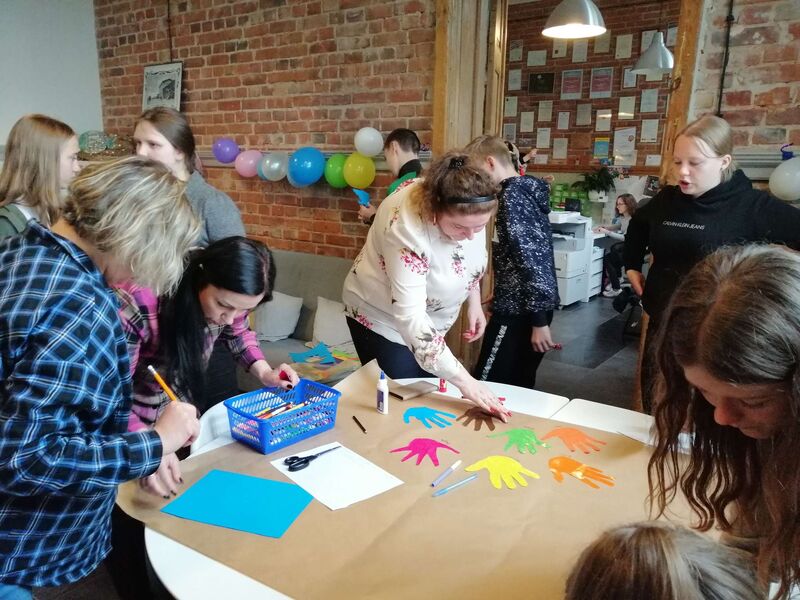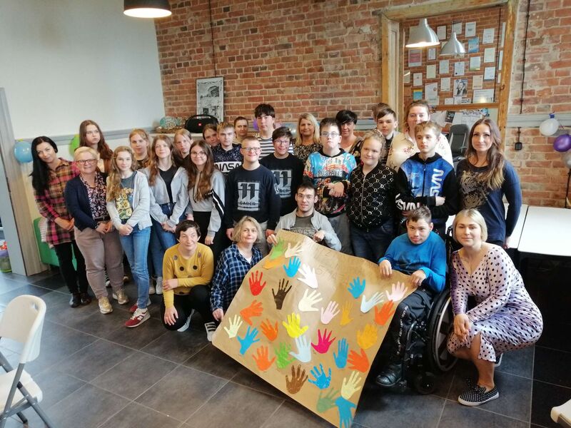 5 maja - dziś obchodzimy Dzień Walki z Dyskryminacją Osób Niepełnosprawnych oraz Dzień Godności Osób z Niepełnosprawnością Intelektualną. Szkolny Klub Wolontariusza „Pomocna Dłoń” na znak solidarności z osobami niepełnosprawnymi zorganizował wspólną zabawę. Zaprosił do wspólnego świętowania podopiecznych Dziennego Ośrodka Rehabilitacyjno-Terapeutycznego. Stworzyliśmy wspólny plakat, w miłej atmosferze poznaliśmy się bliżej.