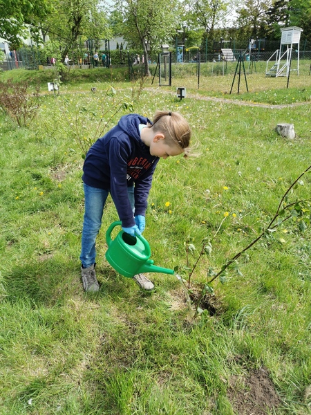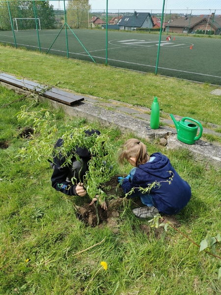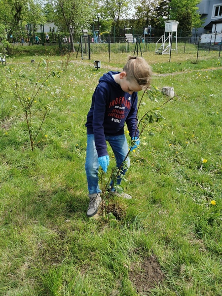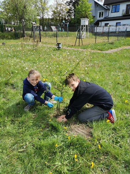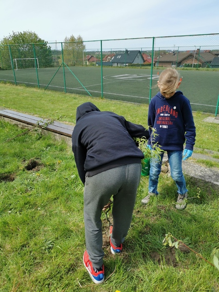 Na początku maja uczniowie w ramach zajęć dodatkowych sadzili krzewy w Lokalnym Centrum Ekologicznym. Uzupełnialiśmy sadzonki, miejscu wcześniej wyznaczonym przez nauczycieli biologii, stopniowo wzbogacając nasz ogród o kolejne odmiany.