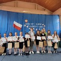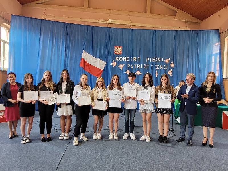 Podczas szkolnej uroczystości swoje umiejętności zaprezentowali w przepięknych aranżacjach zwycięzcy Szkolnego Konkursu Pieśni Patriotycznej pod honorowym patronatem Starosty Sławieńskiego. Była to także okazja aby ich talenty zostały nagrodzone.