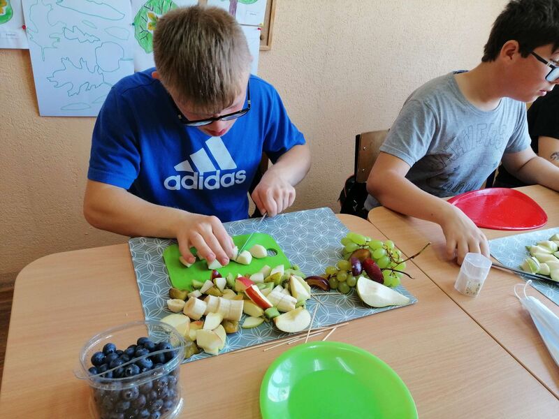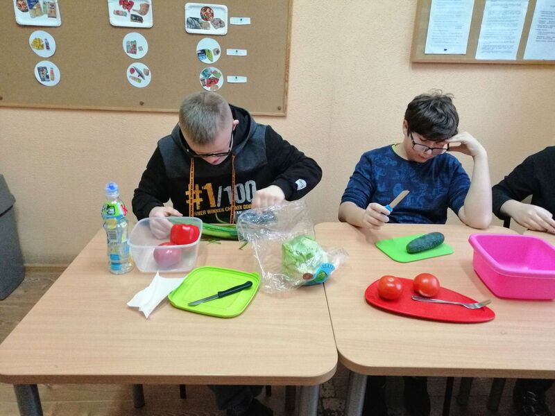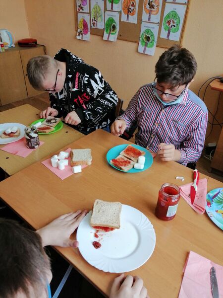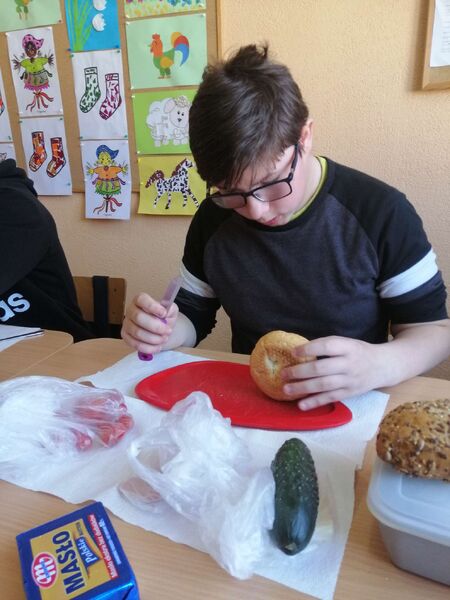 Dzieci ze specjalnymi potrzebami edukacyjnymi przez cały rok szkolny brały udział w zajęciach kulinarnych. Należy od najmłodszych lat uczyć dzieci samodzielnego przygotowywania posiłków. Dotykają, smakują, bawią sie kolorem, kształtem, rozbudzają swoją wyobraźnię. Wszystkie posiłki były podawane bardzo estetycznie. Dzieci rozmawiały o ich walorach odżywczych. W ciągu całego roku uczniowie przygotowali tosty, soki owocowo-warzywne, sałatkę owocowa, sałatkę warzywną, pierniczki, ciasto i pyszny obiadek. Głównym celem tych zajęć było rozwijanie samodzielności. Dzieci miały okazję zgodnie współdziałać w grupie i wzmocnić wiarę we własne możliwości.