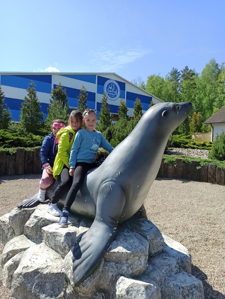 23 maja, w piękny słoneczny dzień klasy 2b i 2e wybrały się na całodniową wycieczkę do Sea Parku w Sarbsku. Uczniowie spędzili tam pełen wrażeń i atrakcji czas. Głównym celem wyjazdu było poznanie fauny i flory mórz i oceanów, co w tym obiekcie zaprezentowane jest w atrakcyjny dla dzieci sposób. Głównym punktem wycieczki było oglądanie dwóch pokazów fok. W jednym z nich opiekunowie fok inspirowali swoje sympatyczne podopieczne do różnych sztuczek, podczas których uchatki bawiły się równie dobrze, jak dzieci. Drugi pokaz był teatralny - foki na równi z aktorami odgrywały swoje role. Robiły to w bardzo zabawny i pełen uroku sposób. Foki szare, foki pospolite oraz uchatki to bardzo inteligentne zwierzęta z poczuciem humoru. Oprócz pokazów fok był też czas na zabawy ruchowe w świetnie przygotowanych miejscach, w morskich klimatach. Uczniowie byli również w wirtualnym akwarium, w którym morskie zwierzęta pływały jak żywe. Można było wejść odwróconego statku, w którym „bujało” jak na prawdziwym. Podczas spaceru po parku wszędzie mijaliśmy morskie stwory realnej wielkości. Dzieci nie mogły się powstrzymać, by na nie wejść, pogłaskać, przyjrzeć się z bliska. Morską przygodę w Sea Parku uważamy za niezwykle udaną.