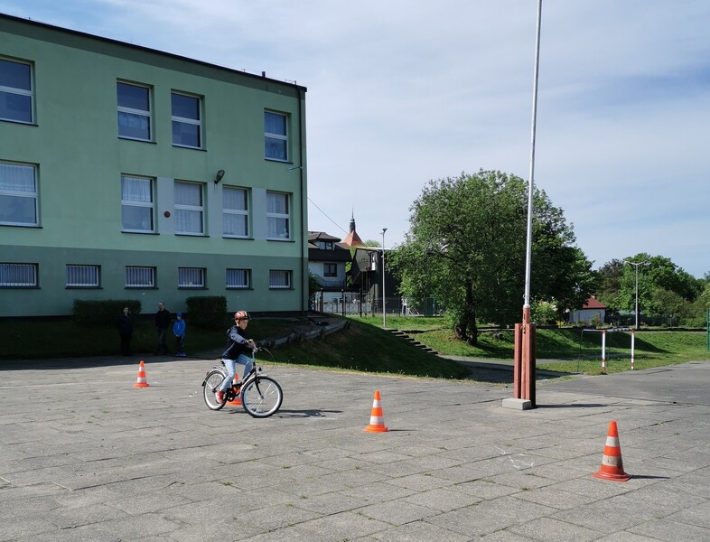 W dniach 25 – 26 maja 2022 r., w czasie gdy ósmoklasiści pisali ważny dla siebie egzamin, 130 uczniów naszej szkoły przystąpiło do egzaminu na kartę rowerową. Egzamin składał się z części teoretycznej i praktycznej. Część teoretyczna obejmowała 25 pytań, natomiast część praktyczna dotyczyła m.in.: ruszania z miejsca, utrzymania równowagi podczas jazdy, utrzymania się na swoim pasie ruchu i swoim torze jazdy, umiejętność zasygnalizowania wykonania manewru (np. przy skręcaniu: obrót głowy w celu sprawdzenia bezpieczeństwa, wyciągnięcie ręki, dwie ręce podczas manewru na kierownicy) oraz prawidłowe zatrzymanie (zahamowanie) przed linią STOP.