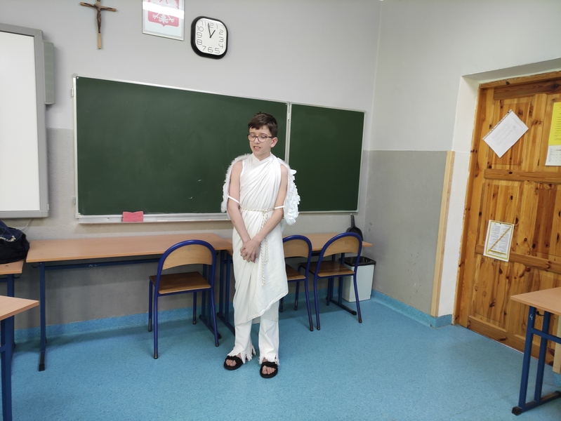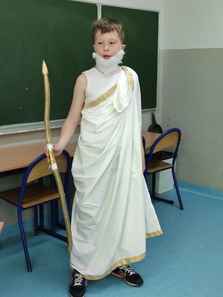 02 czerwca 2022r. uczniowie klas piątych darłowskiej ,,Trójki” przystąpili do udziału w Szkolnym Konkursie Mitologicznym. W pierwszej części przedstawiciele klas zaprezentowali wylosowaną wcześniej postać mitologiczną. Ocenie podlegał strój przygotowany przez uczestników, rekwizyty oraz sposób przedstawienia danej postaci.