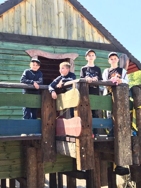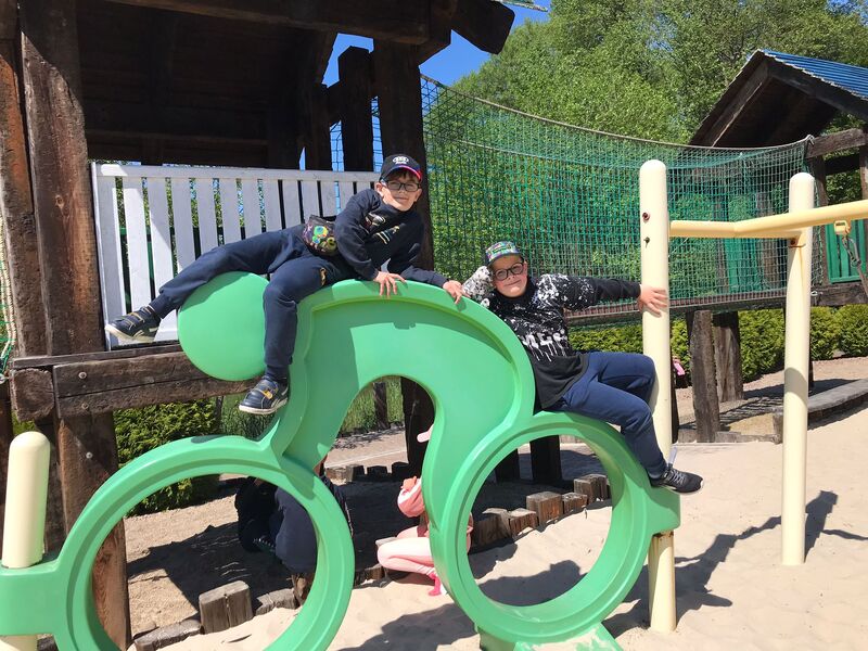 Dzieci skorzystały też z różnych placów zabaw, w tym z parku zręcznościowo-linowego Małego Pirata oraz uczestniczyły w zabawach na trampolinach.